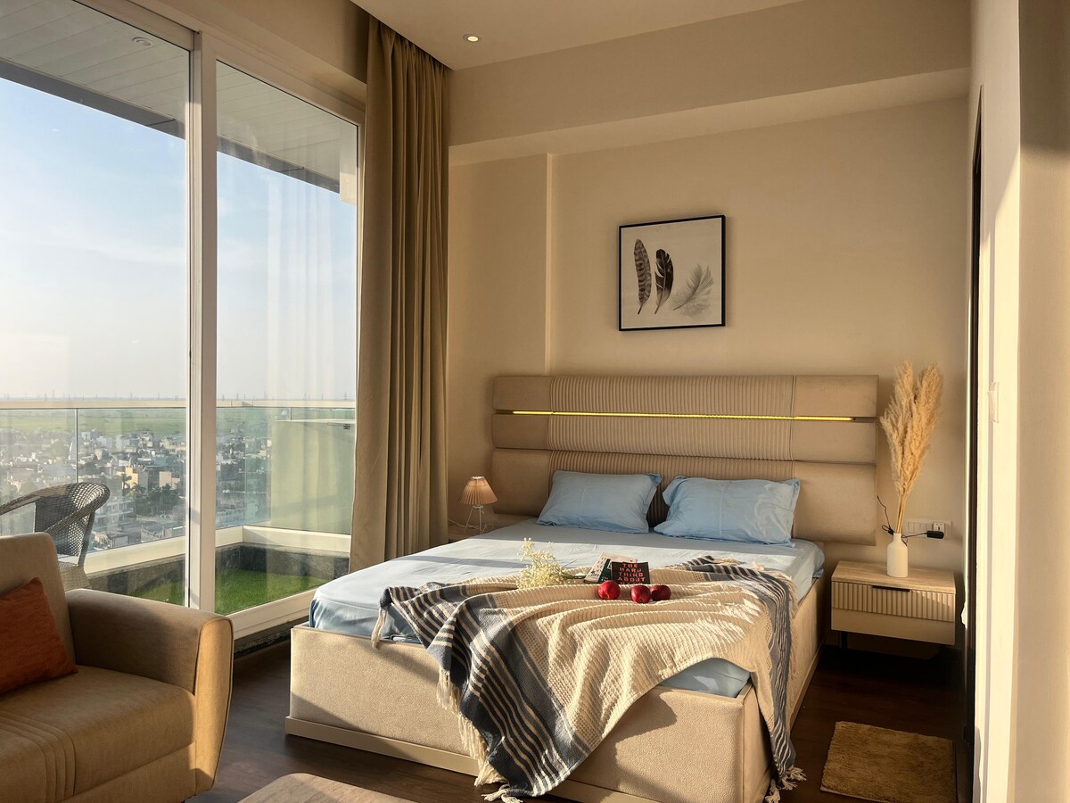 Restez dans un 1BHK confortable et bien conçu au 11e étage de Satya The Hive, Sector 102, Dwarka Expressway. Après une journée en ville, détendez-vous sur votre grand balcon privé avec vue panoramique sur le coucher de soleil. Idéal pour les séjours à l'aéroport, les voyages d'affaires et les longs séjours, ce logement de 67 mètres carrés offre une cuisine entièrement équipée, une connexion Wi-Fi, un espace de travail, une télévision connectée et des magasins, des cafés et des restaurants dans l'immeuble. Delhi et Gurugram sont à quelques minutes.