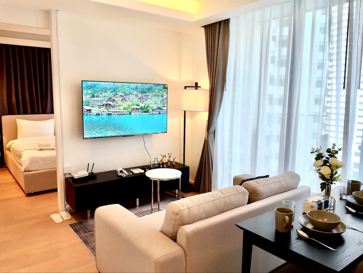 Studio B1D au centre-ville/Près du métro/Vue sur la ville depuis les étages supérieurs/Quartier commerçant de Siam/Navette gratuite/Piscine extérieure/Fitness/Bar panoramique/Transfert aéroport pour quatre nuits