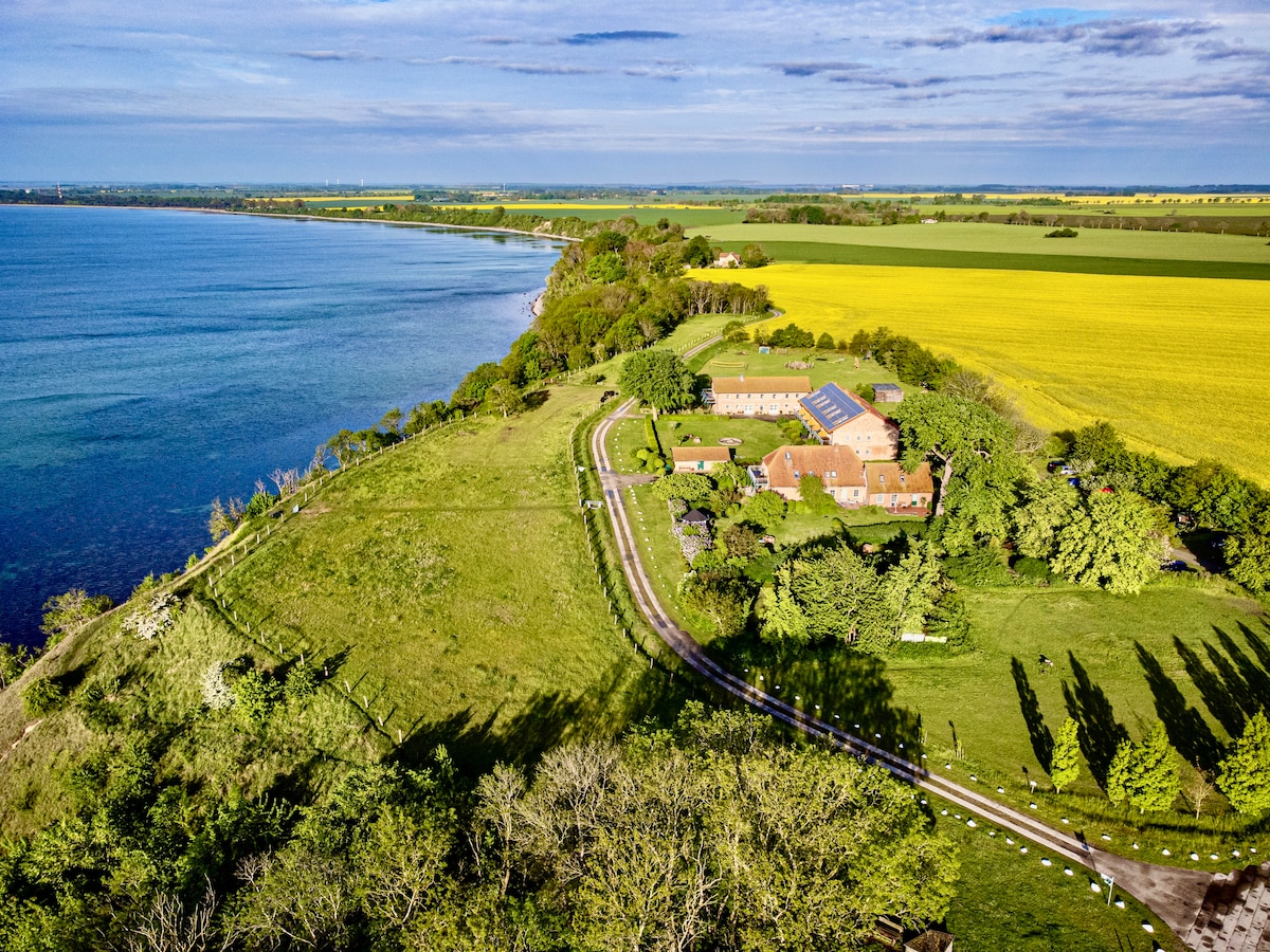 Nos deux cottages de vacances, identiques, se trouvent dans un bâtiment séparé à côté de notre maison principale, chacun avec son entrée privée – calme et intimité garanties. Le sauna est situé juste à côté de l’étang de baignade naturel et peut être utilisé librement, serviettes et peignoirs inclus. L’étang est idéal pour se rafraîchir après le sauna. Situation centrale et paisible, au bord du petit Bodden de Jasmund, à côté d’une grande réserve naturelle.