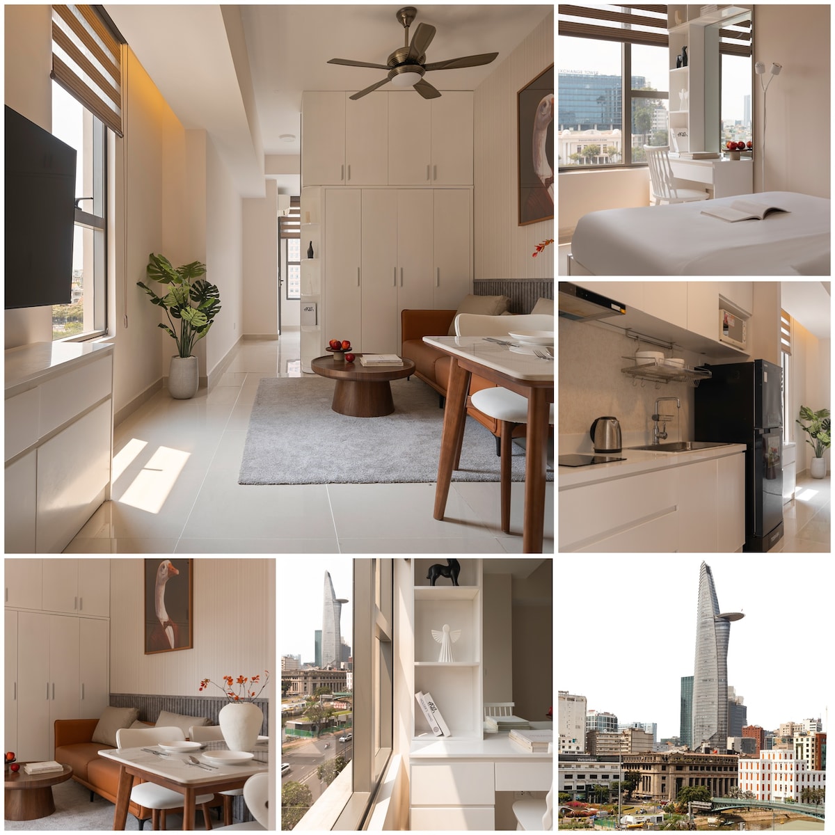 Établi en 2023, nous proposons des appartements de haute qualité à court et à long terme situés juste sur une rue animée avec des cafés célèbres, des restaurants, Circle K et des magasins pratiques à proximité et à quelques minutes à pied de la rue piétonne Bui Vien, du parc Tao Dan. Rentables par rapport aux hôtels, nous fournissons des appartements 1 BR avec intimité, style moderne, cuisine, balcon, porte et fenêtres insonorisées, espace de bureau pour travailler, jardin sur le toit, ascenseur, nettoyage régulier et le confort d'un « Home-from-Home ».