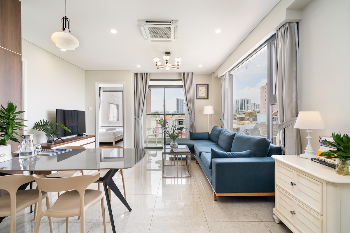 Welcome to Léman Apartments by IDG, stay at our 2BR/2BA urban retreat in the heart of Ho Chi Minh City. This home is newly renovated for your enjoyment Located in quiet, tree-lined District 3, adjacent to District 1, you will be next door to the War Remnant Museum, walking distance to the Independence Palace, Notre Dame Cathedral, Ben Thanh market and Tao Dan Park. Enjoy top amenities including a rooftop pool, gym, Starbucks, and a convenient minimart—perfect for a comfortable urban stay.