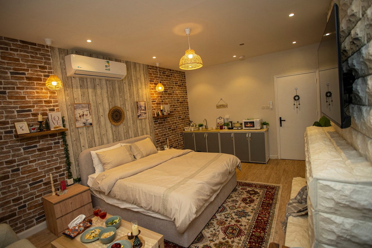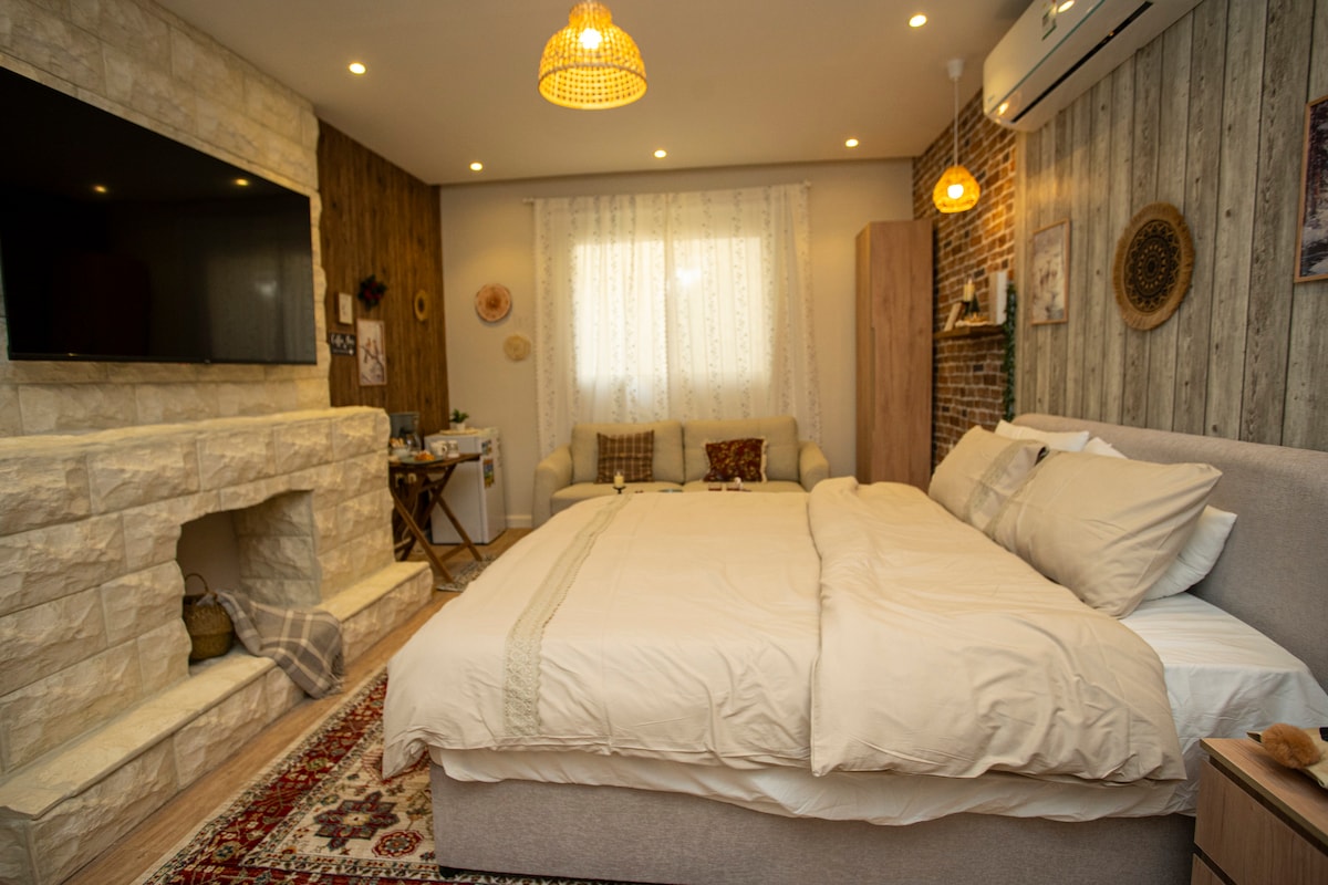 Bienvenue à nos invités Permettez-moi de vous décrire votre logement et votre emplacement Composé de : une chambre avec un lit double, un salon, une cuisine complète, une table à manger pour deux personnes, une salle de bain, un lavabo extérieur et intérieur Bien sûr, vous êtes précieux pour nous Parce que nous avons une télévision intelligente et il y a tous les programmes que vous aimez et vous pouvez regarder Netflix Et bien sûr, tout cela est sur Internet Il y a une connexion Internet privée J'espère vous avoir tout expliqué Nous vous remercions de votre visite et espérons vous revoir bientôt. Que Dieu vous bénisse