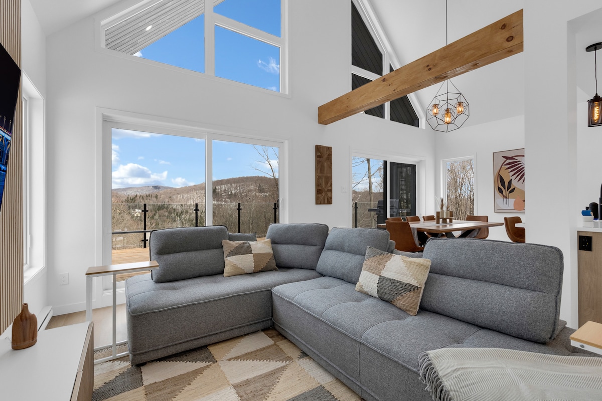 Profitez de l'effet apaisant de la nature en séjournant dans ce chalet contemporain à fenestration abondante en plein coeur de la forêt. Tremblant est magnifique, peu importe la saison. Destination plein air de rêve, vous serez à 8 minutes du Mont-Blanc et 20 minutes du Mont Tremblant. Que ce soit pour la randonnée, le ski de fonds, la raquette ou la motoneige, des sentiers sont accessibles facilement dans toutes les directions. Sans oublier le célèbre P'tit Train du Nord à 3 minutes de route.