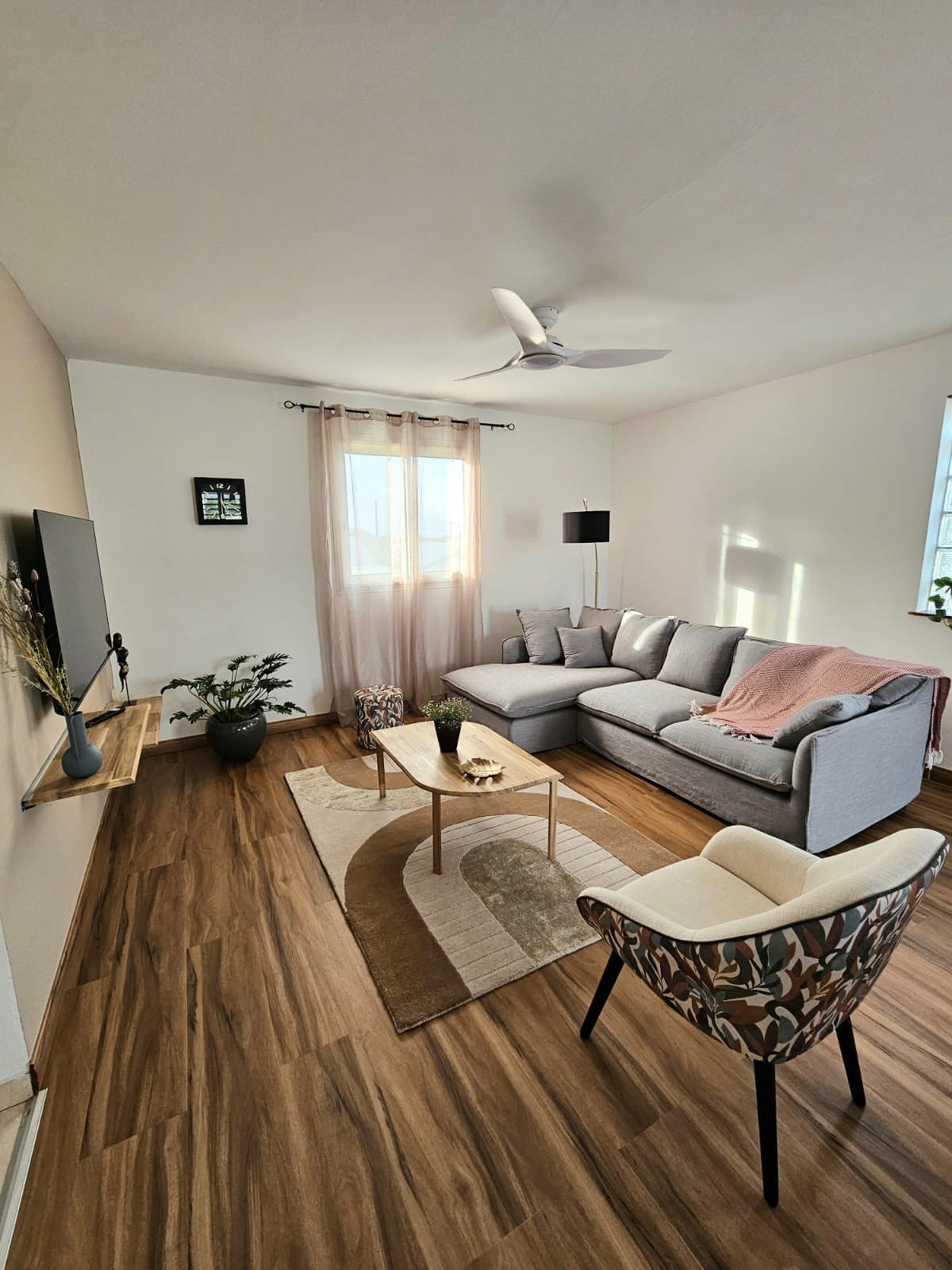 Situé dans une propriété privée, cet appartement est tout équipé : climatisation, plaque de cuisson, lave vaisselle, lave linge, sèche linge, frigo, four, TV, Wii-U (4 manettes) et Wifi. Accès libre et exclusif à la piscine (vous serez les seuls à l'utiliser), mais notez qu'elle n'est pas chauffée. Proche de l'aéroport (15 minutes en voiture) cela en fait un point de chute idéal à la fois : pour votre arrivée sur l'île, afin d'organiser votre séjour; et, pour la veille de votre départ.