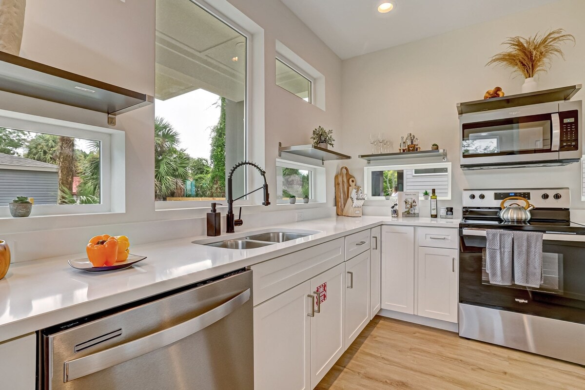 Séjournez avec style sur l'île d'Anastasia Découvrez l'élégance intemporelle de cet appartement des années 1920 entièrement rénové. Niché au cœur du quartier historique de Davis Shores, cette belle retraite allie le charme de la Floride d'antan au confort moderne. 🌴 Emplacement idéal Traversez le pont des Lions pour rejoindre les rues pavées, les boutiques et les restaurants de la ville historique de Saint-Augustin. Entouré de cafés, de parcs et de paysages côtiers.
