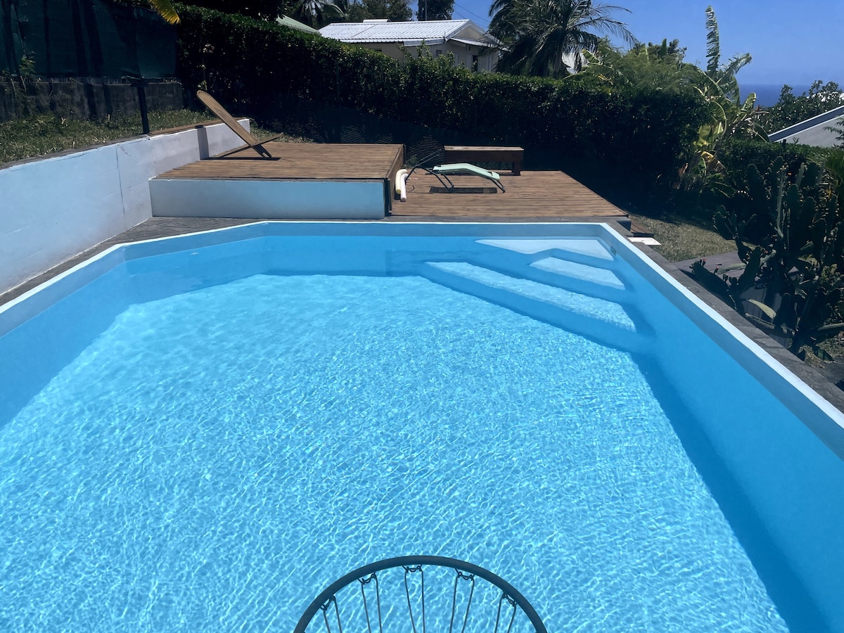 Studio entièrement équipé et climatisé. NON FUMEUR Proche de tous commerces et restaurants, idéalement situé près des départs de randonnées entre ciel et océan. Dans le calme et la verdure, vous pourrez vous prélasser dans la piscine au sel, (non chauffée ) face au piton Bellevue. Parking privé. Une grande terrasse sous varangue avec un salon de jardin, table haute et tabourets.