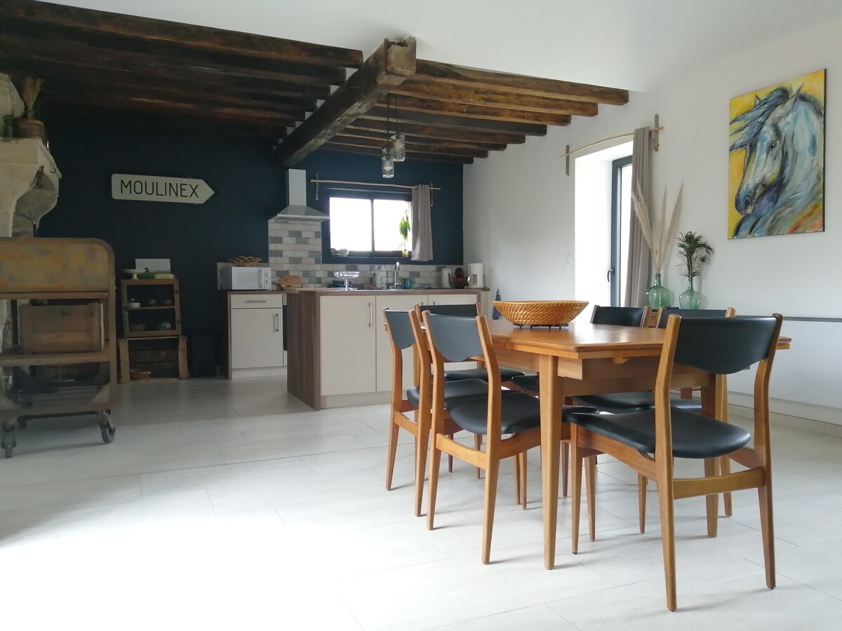 Petite maison de charme au coeur du Perche, idéalement située au coeur de la nature sans vis à vis, à 5 km de Mortagne au Perche et moins de 2h de Paris. Séjournez dans un cocon silencieux au milieu de la nature, réchauffez vous au coin du feu et partagez un barbecue à la cheminée ou en extérieur, en famille ou avec vos amis. Vivez l'expérience d'une maison de campagne, sans ses contraintes ! Je ne manquerai pas de vous partager mes meilleures adresses de bouche et mes brocanteurs préférés!