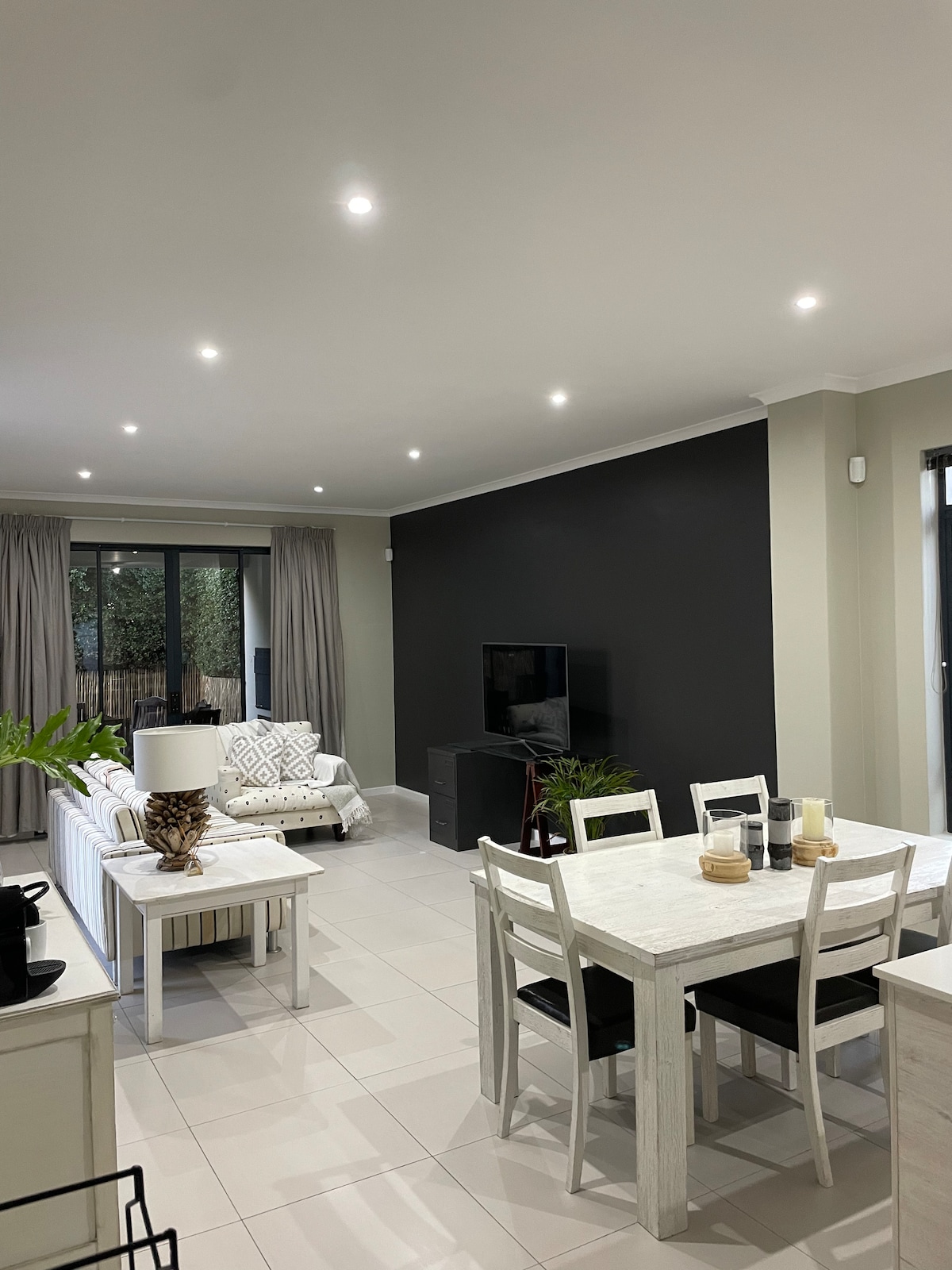 Un espace intemporel où vous pouvez laisser vos soucis et dans cet espace spacieux et serein, grand espace de vie ouvert, avec d'énormes portes de 10 mètres qui s'ouvrent à l'arrière et à l'avant de la maison, vous donnant la mer depuis chaque pièce et espace dans la maison. La maison comprend trois chambres, l'une dans la suite et les deux autres partageant une salle de bain. La maison dispose d'un immense salon ouvert, comprenant un salon, une salle braai, un coin repas et une cuisine entièrement équipée et un immense jardin.