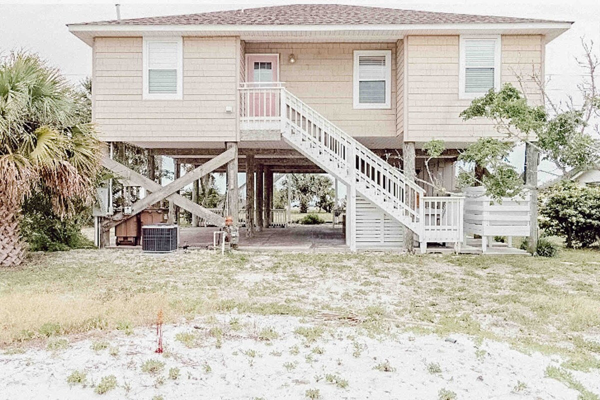 Évadez-vous dans notre retraite confortable et sans stress à seulement 1,5 pâtés de maisons de la plage. Parfait pour les petites familles, les couples ou les lunes de miel, notre charmante maison offre un cadre de quartier paisible avec tout le confort d'un chez-soi. Dégustez du café du matin sur le porche avec moustiquaire, du linge frais et de la commodité des machines à laver. Nous accueillons les petits chiens de moins de 25 livres, alors amenez votre compagnon à quatre pattes ! Découvrez la beauté de la côte oubliée avec nous.