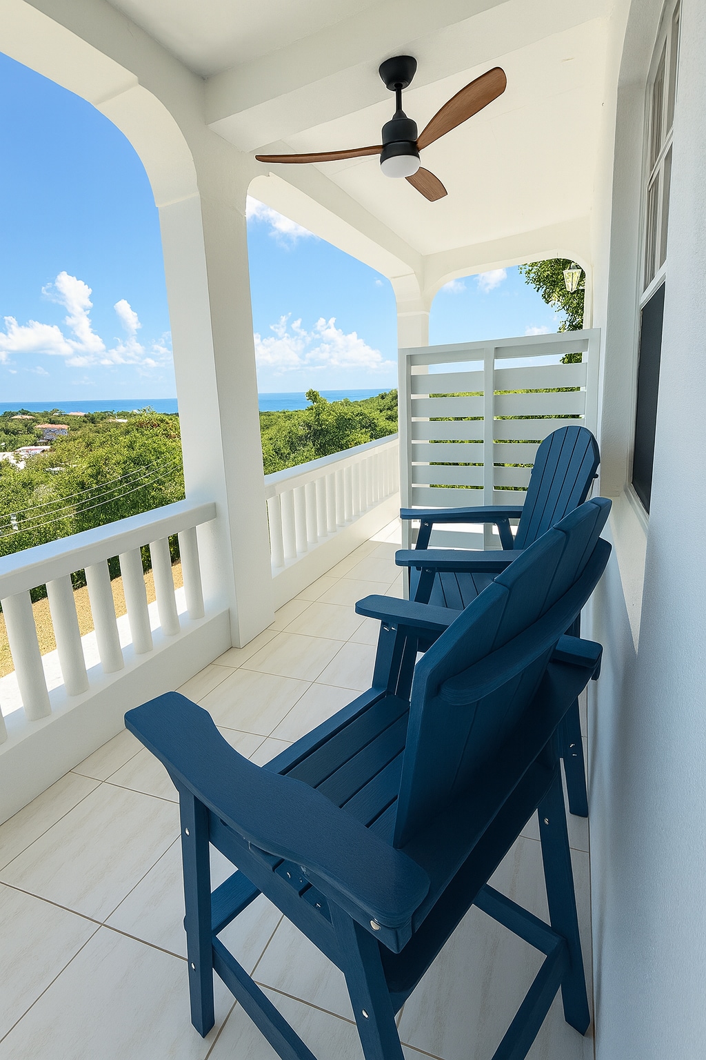 Enjoy a stylish experience at this centrally-located place. This newly built apartment is nestled amongst picturesque scenery and has a beautiful view of the ocean. There are also lovely mountain and valley views. It is located at the center of the island within a few minutes drive of a KFC and supermarket. Feel free to sample a mango from the overhanging branches once they are in season.