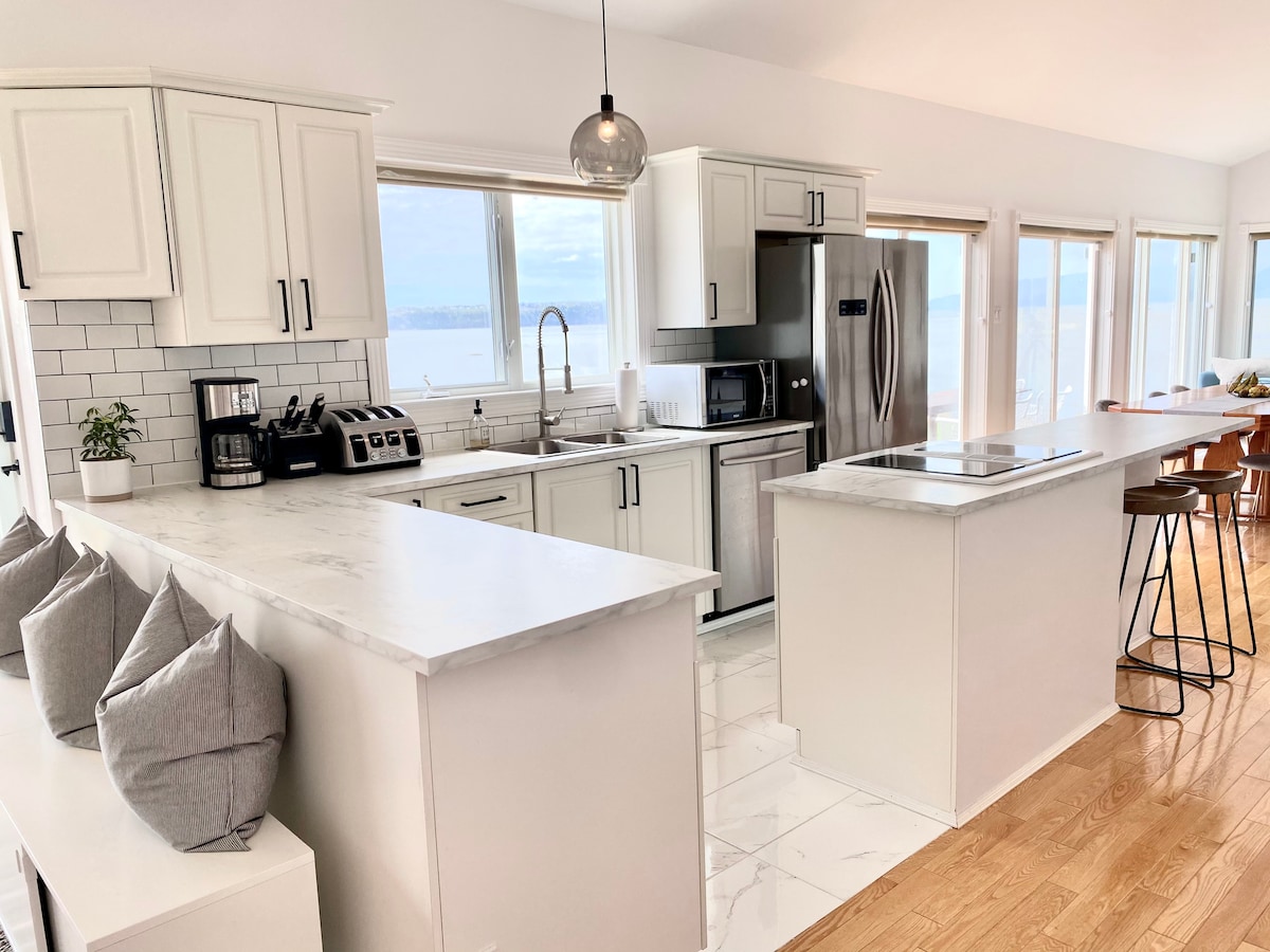 Les commentaires sur La Petite Valise le mentionnent, c'est l'endroit idéal pour admirer la beauté du fleuve St-Laurent. L'appartement est situé au deuxième étage sans poteaux et fils qui nuisent à la vue. C'est un endroit confortable, paisible avec toutes les commodités pour passer un bon séjour. Vous vous sentirez chez vous, l'insonorisation est impeccable. Bien situé, vous avez accès à une multitude d'activités, randonnées,plages, excursions baleines, etc.) On vous attend. # CITQ 299488