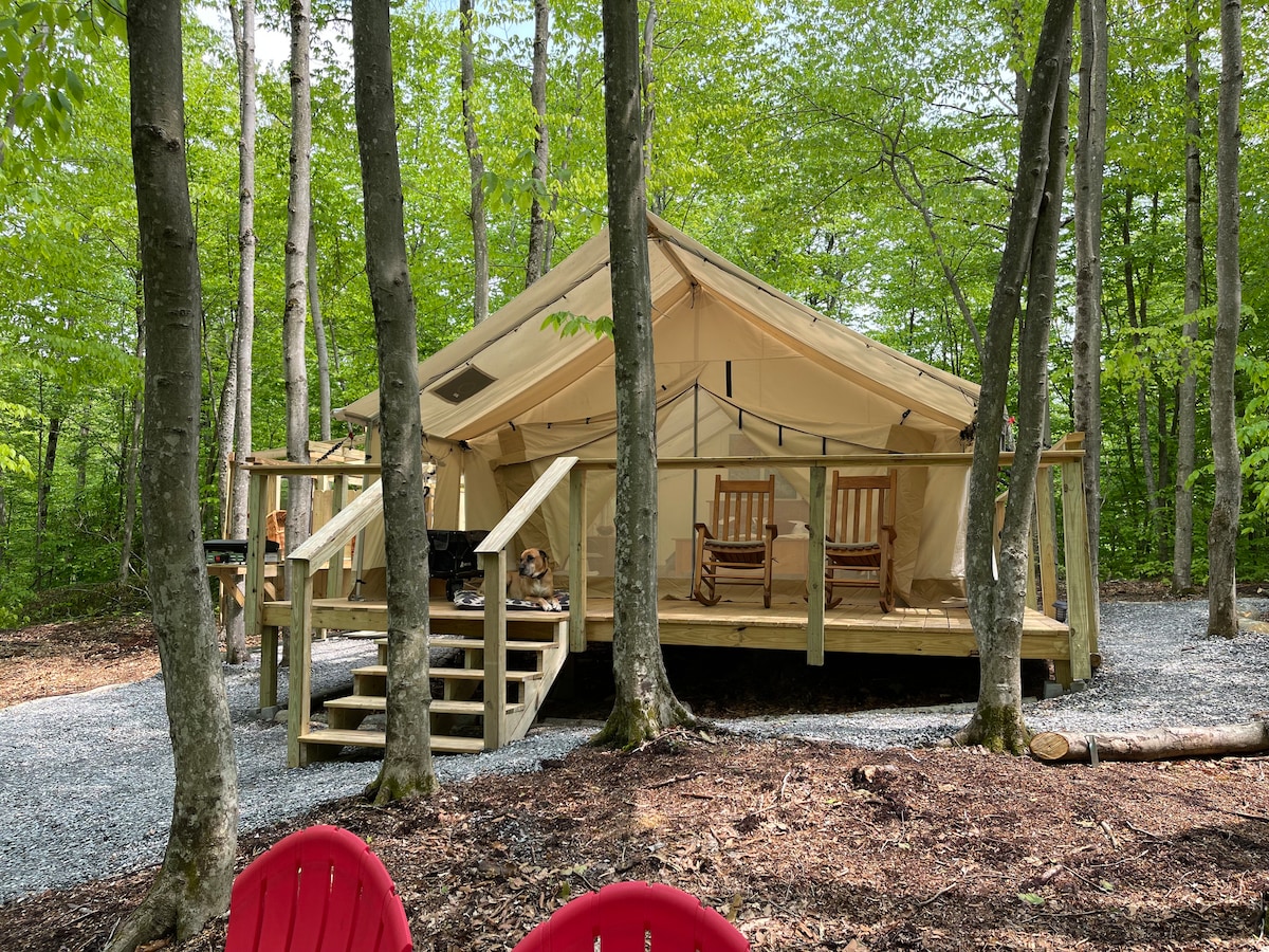 Tente de glamping en toile Hemlock sur 100 acres Pas de chauffage