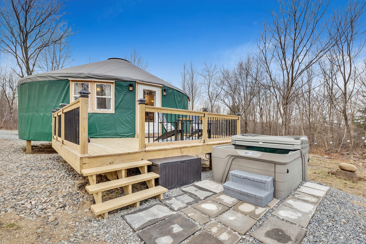 Yourte de luxe/bain à remous/foyer à 15 min de Jay Peak
