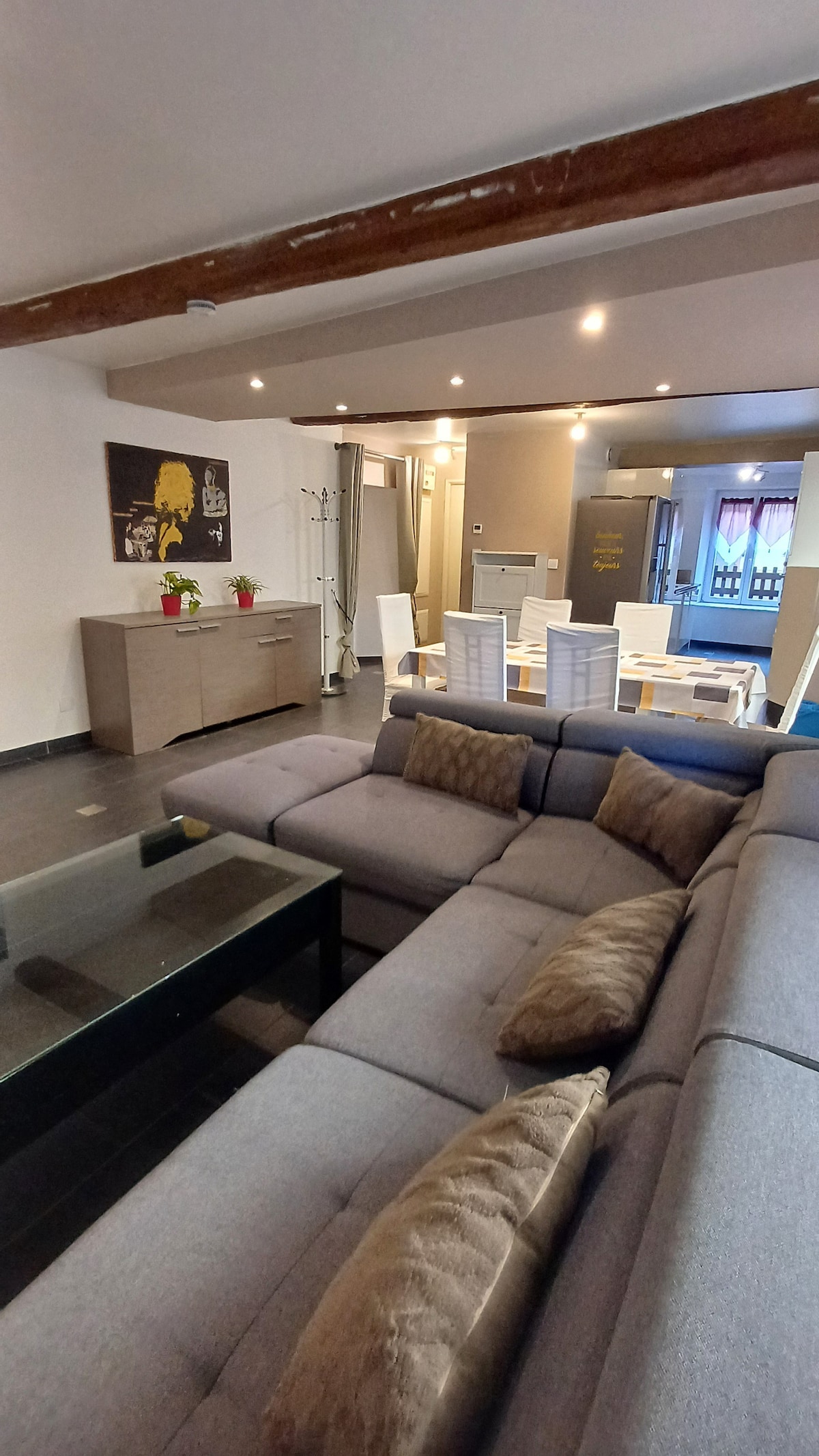 Appartement à la campagne, mitoyen à notre maison mais totalement indépendant. Venez profiter du calme de ce petit hameau entre champs et montagnes. L'appartement totalement équipé de 43m² se compose d'un espace salon avec canapé-lit convertible pour deux personnes et d'une cuisine ouverte équipée (lave-vaisselle, cafetière, four micro-ondes/grill). vous trouverez à l'étage la chambre avec un lit double et la salle de bain comprenant un meuble vasque, une douche, un WC et un lave-linge.