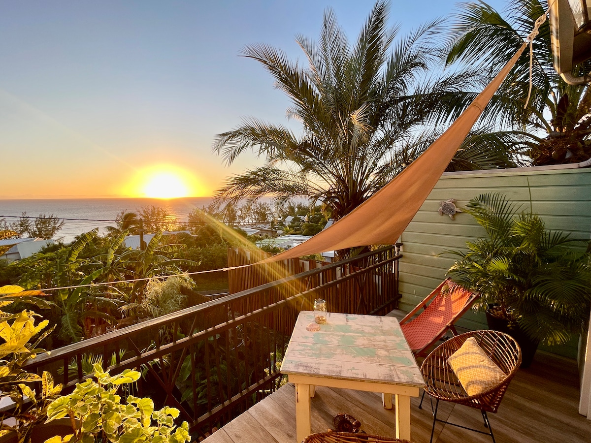 Logement proche de la plage accessible à pieds, equipé d'un jacuzzi privatif avec vue mer et montagne depuis le jacuzzi. Il est au premier étage. Profitez d'une situation exceptionnelle proche du lagon. Fêtes interdites. Le jacuzzi est accessible à toute heure, cependant les buses de massages sont programmées jusqu’à 21h et reprennent à 8h. TARIF DÉGRESSIF SELON DURÉE
