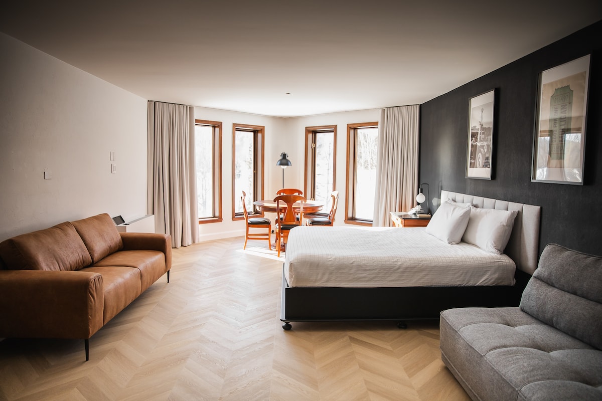 L'élégance unique des chambres. Nous disposons de salles de bains séparées, comprenant un vestiaire pour hommes et un autre pour femmes sur le même étage. Nos chambres sont gardées propres. Voir les commentaires de nos voyageurs. Nos clients ont accès à la forêt et au deck situé près de la rivière, Un séjour inoubliable chez Expérienza. Repas non inclus. Notre restaurant propose un menu table d'hôte à partir de $39. Un déjeuner peut être obtenu pour $15. CITQ 299534 Expiration 2026-10-10