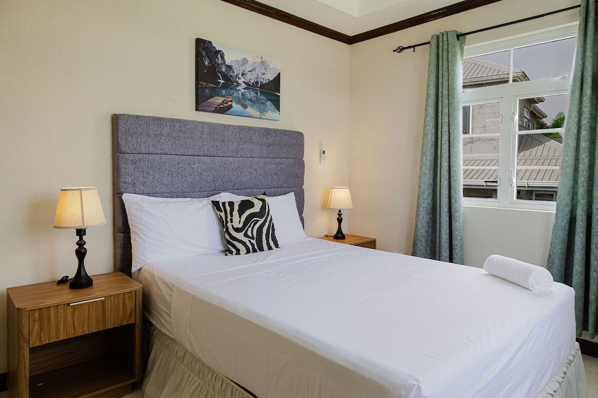 Évadez-vous dans cet appartement 1BR/1BA paisible et spacieux dans la paroisse de St. George. Sortez sur votre patio privé et profitez de la vue sur un jardin tropical luxuriant. À l'intérieur, détendez-vous confortablement avec une cuisine entièrement équipée, un coin repas confortable et une chambre tranquille et climatisée. La piscine et la terrasse sont à quelques pas du salon. Que vous soyez en visite pour vous détendre ou explorer, c'est l'escapade paisible idéale pour se ressourcer et se détendre.