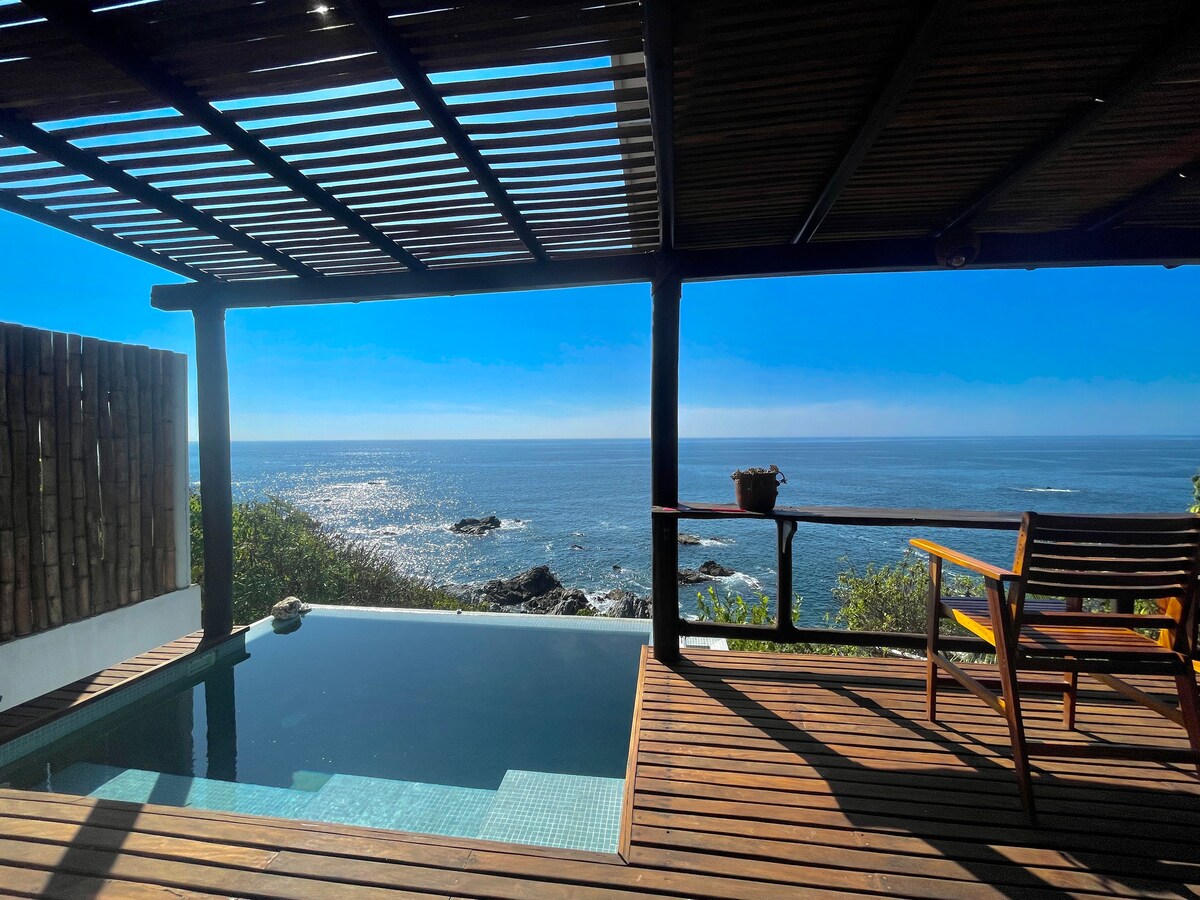 Maison de vacances de style Oaxaca nichée dans la nature, avec vue sur un littoral préservé. Conçu pour un maximum de détente et de plaisir, avec des espaces de vie sur les deux niveaux; une grande cuisine de chef, 3 chambres à coucher grillagées (2 avec climatisation), 3 salles de bain, douche extérieure, eau chaude, buanderie et une plage privée avec une vie marine épique. SANS INTERNET! Intentionnellement. C'est le plus grand luxe de tous. C'est plus qu'un logement. C'est un sanctuaire privé et une escapade pour votre esprit.