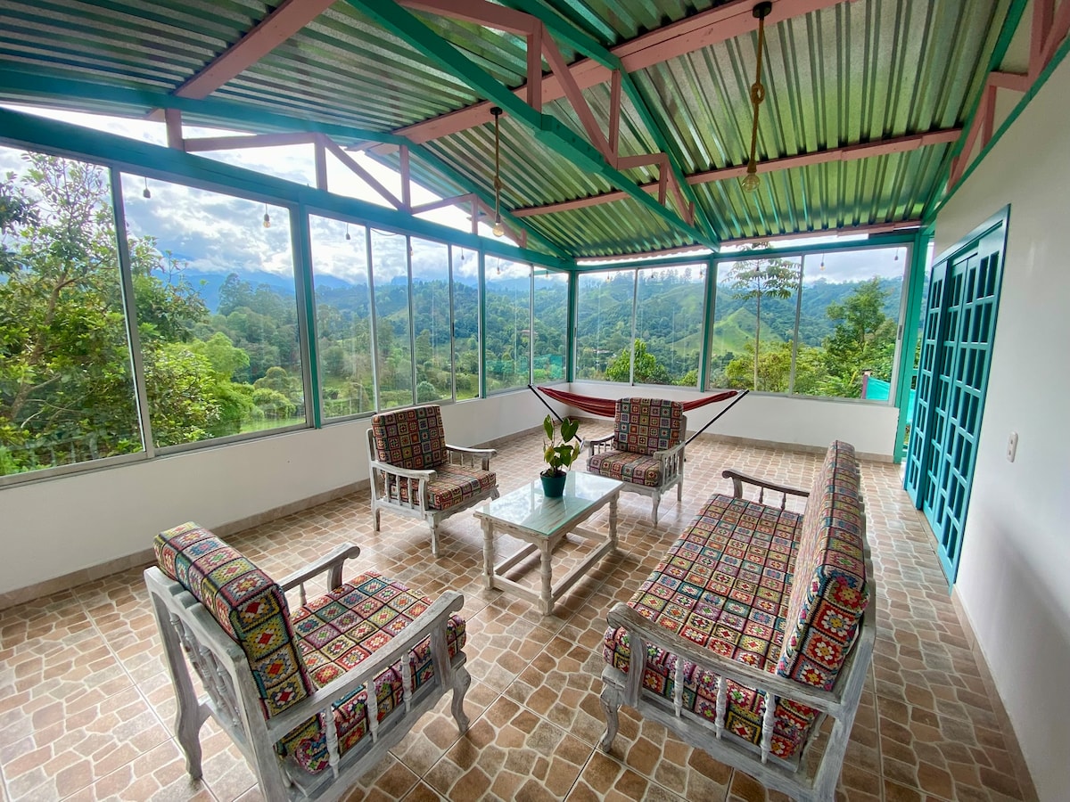 Casanabi est situé dans la zone urbaine de Salento, à quelques pâtés de maison de la Plaza de Bolivar (place de la ville) et de la Calle Real (la rue principale). Quartier calme et résidentiel, entouré de verdure avec vue sur le coucher de soleil. La maison dispose de trois chambres, de deux salles de bains avec douche et eau chaude, d'une salle à manger, d'une cuisine, d'une terrasse avec un grand hamac et d'un jardin. La maison est louée complète et est idéale pour se détendre pour les groupes et les familles.
