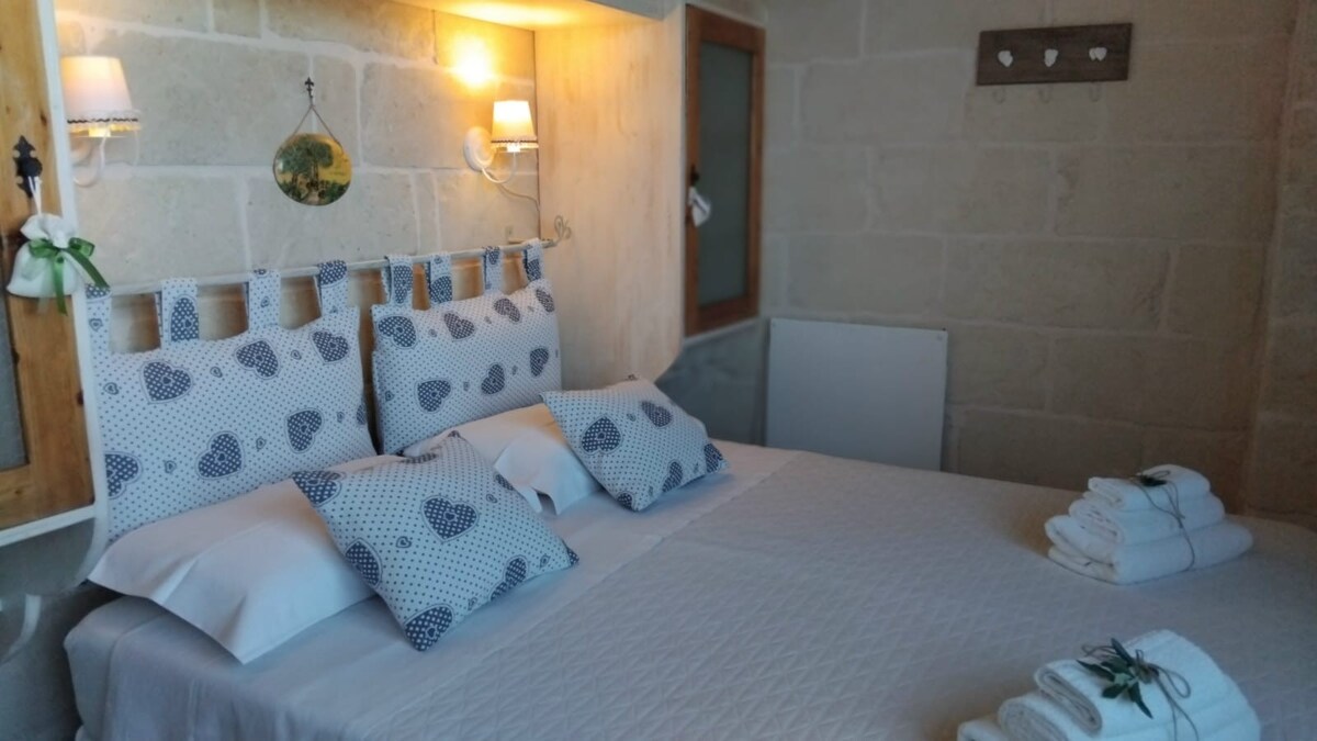 Petit, paisible, charmant Country B&B avec seulement deux unités pour une expérience rurale réelle et authentique au cœur des Pouilles. Nous acceptons les chiens. Que vous souhaitiez simplement vous reposer, prendre un verre ou vous adonner à une douce distraction, il y en a pour tous les goûts. Une autre maison d'hôtes indépendante avec salle de bains privative est également disponible et peut accueillir deux personnes de plus. Veuillez consulter notre autre annonce. Suivez-nous : casina misa CIS : BR07400891000052145 CIN : IT074008B400055196