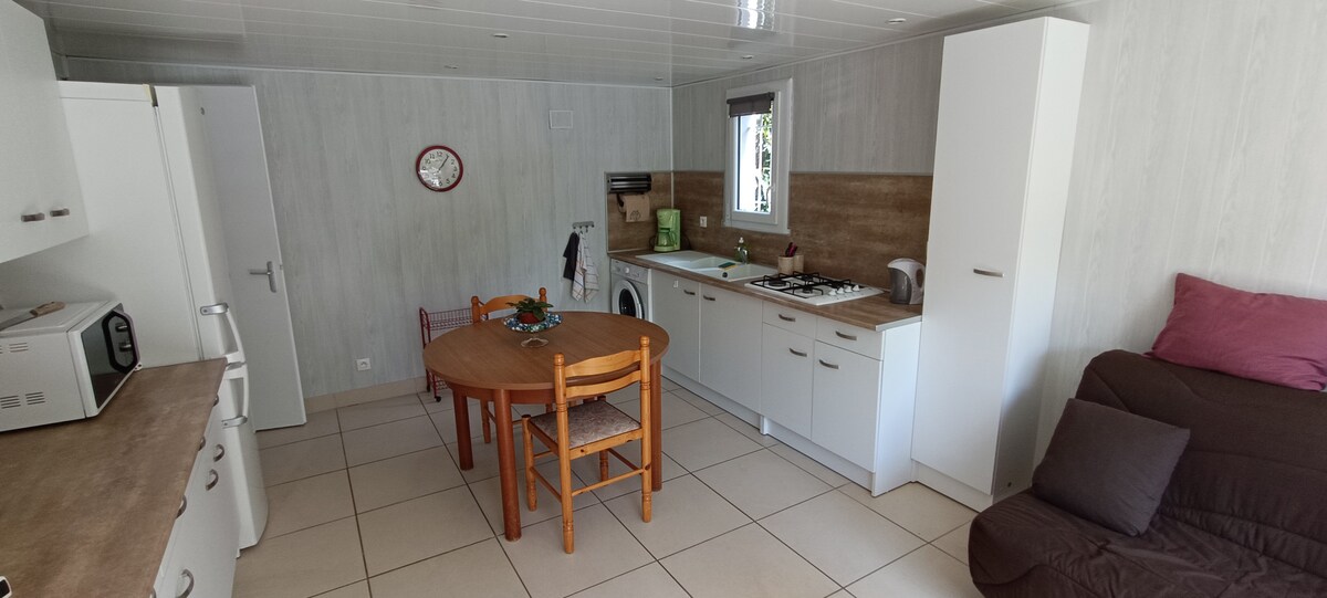 Maisonnette de charme construite en 1819, au cœur du village de Sallertaine labellisé "Ville et Métiers d'Arts". Tout juste rénovée dans le respect de l'âme de la bâtisse, venez vous ressourcer dans un environnement sain et chaleureux ! D'une surface habitable de 46 m², le gîte comprend : une pièce à vivre avec cuisine équipée, une chambre verrière, une chambre mansardée, une salle d'eau et un WC. Vous apprécierez également une petite cour fermée de 25m² pour profiter de l'extérieur.