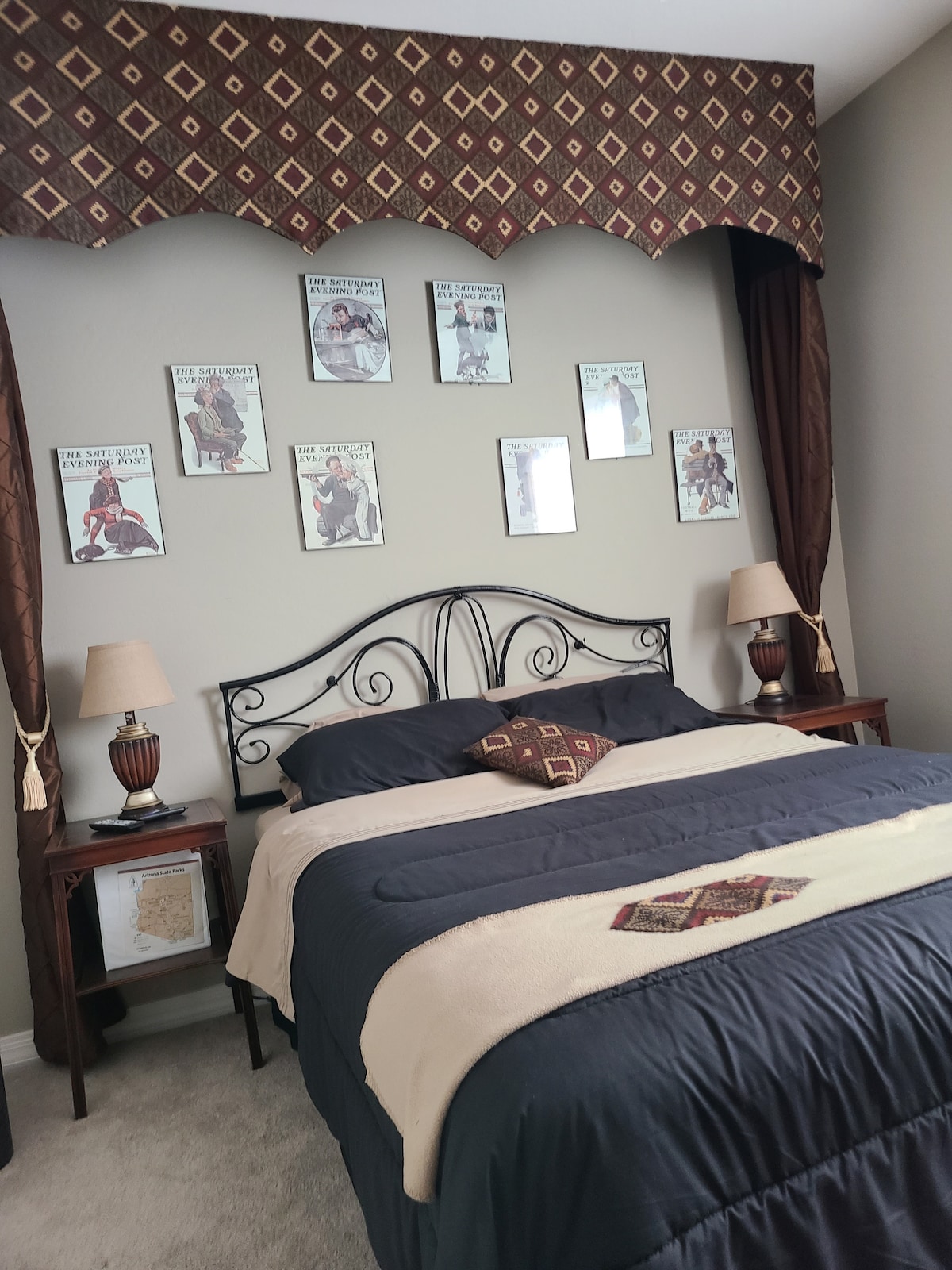 Grande chambre propre - non-fumeur et accessible en fauteuil roulant avec une salle de bain 3/4 totalement privée. Une station de café, un micro-ondes, un réfrigérateur avec des boissons sans alcool gratuites, des bouteilles d'eau, une entrée privée, un bureau, des assiettes, des bols, de l'argenterie, la climatisation, un sèche-cheveux, des serviettes, un fer à repasser, une armoire et un lit king-size vous attendent. Livres, télévision connectée 40", Internet 5g et jeux fournis. Contactez votre hôte pour les choix de petit-déjeuner lorsque vous recevez les codes d'arrivée. Conforme ADA. Vous adorerez cet endroit ! Ville de Mesa, AZ Licence STR LIC25-13143
