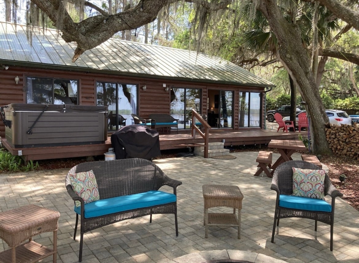 Cette maison est appelée localement « The Lodge ». Elle est chargée de charme rustique et de tonnes de trophées, y compris un tapis de crocodile grandeur nature. Cette maison est spacieuse et confortable à la fois. Cette maison est située dans la forêt nationale d'Ocala et pourtant à seulement un demi-pâté de maisons du parc, qui comprend des terrains de basket-ball, volley-ball, tennis, softball, jeu de palets et jeu de poche. Les gardiens vivent à proximité et sont très sympathiques et serviables en cas de besoin. Les animaux de compagnie ne sont pas autorisés sur la propriété.