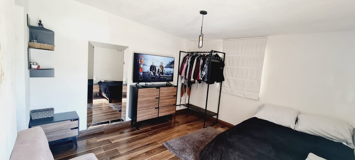Détendez-vous dans cet espace calme et confortable, il a tout ce dont vous avez besoin pour rendre votre séjour agréable et agréable. C'est un appartement avec un lit double, un écran avec Netflix, une très grande cuisine et une salle de bain complète. Entièrement équipé pour votre confort. Il est situé dans un quartier très bien situé et sûr, à proximité des centres commerciaux, des restaurants et des avenues principales. Parfait pour les professionnels, les couples ou les visiteurs à la recherche d'un espace propre, confortable et sûr.