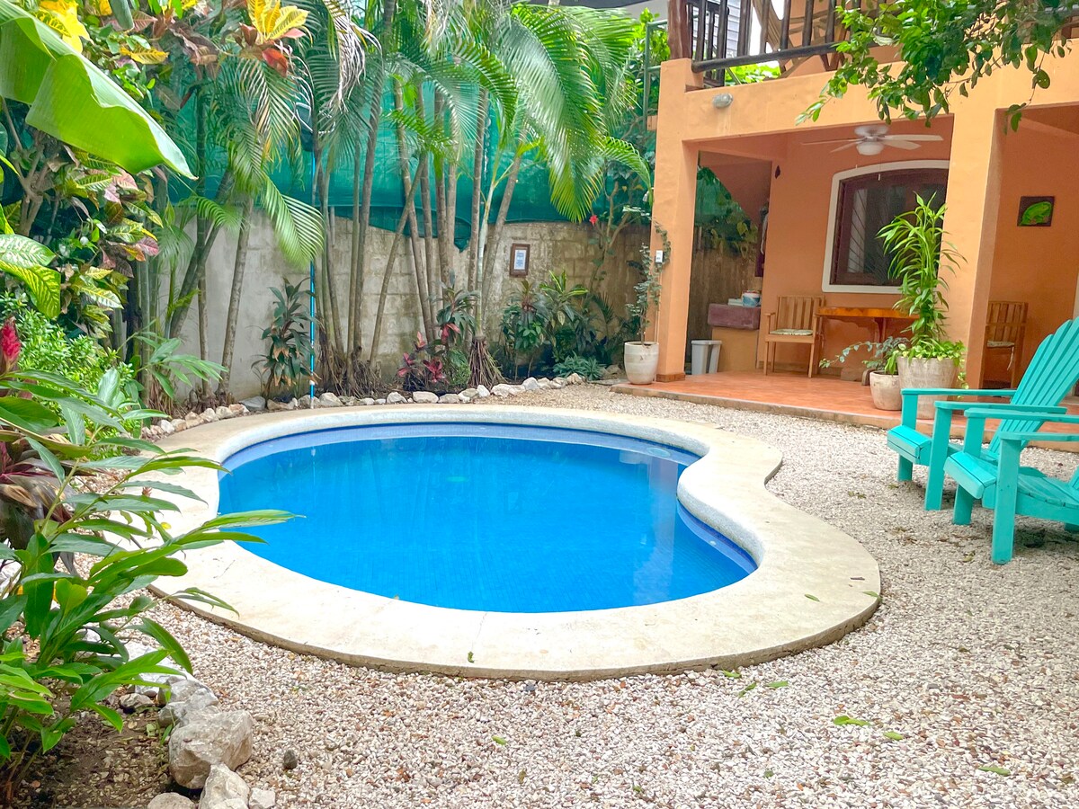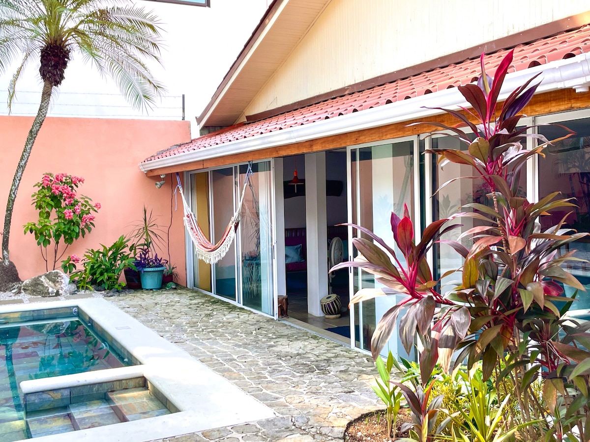 Cette adorable petite villa est perchée au bord d'une rivière à marée pleine de nature ! Il y a des mangroves, des martins-pêcheurs, des lézards basilic, des singes hurleurs, des tatous et plus encore. Ce logement unique est proche de tout à Samara. Elle est à seulement 3 minutes à pied de la plage ou du centre-ville. Chaque location comprend du café IONA, torréfié à la main sur place dans les montagnes au-dessus de notre petite ville. Et ce n'est pas tout ! Chaque location nous aide à soutenir des projets de construction communautaire à Samara. À bientôt !