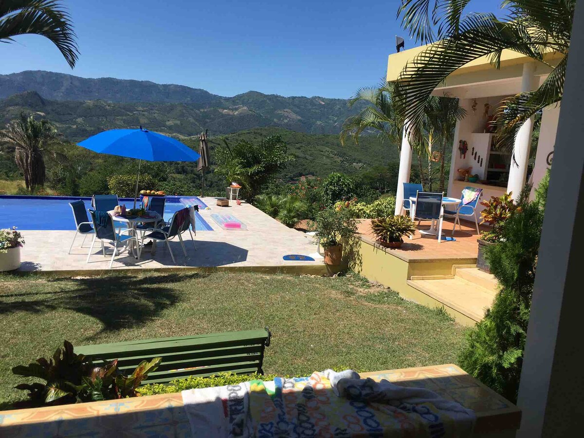 Maison de vacances près d'Anapoima, avec l'une des meilleures vues de Colombie. Idéal pour se reposer ou faire du télétravail en pleine nature. Située dans un ensemble fermé et sécurisé, elle dispose de : 🏊♀️ Piscine privée avec vue panoramique 🛁 Jacuzzi avec eau chaude 📶 Wifi haut débit (idéal pour le télétravail) 📺 Télévision nationale et Netflix 🌬️ Ventilateurs 🔥 BBQ au gaz et espace extérieur 🌞 Chaises longues 🌳 Environnement calme et privé 🐾 Pet friendly