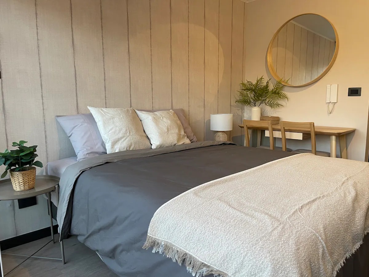Profitez de ce Home Studio proche de Movistar et avec connectivité au centre-ville. Espace fonctionnel avec : chambre, salle de bain (serviettes de douche), cuisine équipée/espace de travail/WIFI, Smart TV. - À quelques pas du métro Parque Almagro, promenade Bulnes, supermarché, Université centrale, à proximité du commerce, du théâtre Caupolicán, des hôpitaux. - Proximité de Movistar Arena (7 min/véhicule, 20 min/pied) Enregistrez vos données auprès de la conciergerie et entrez par serrure électronique et code d'accès check-in 24/7.