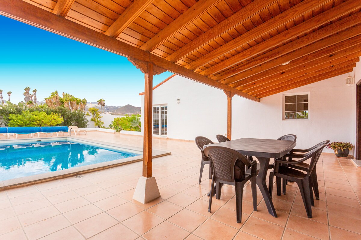 Maison de style canarien avec vue sur la mer, terrasse et piscine