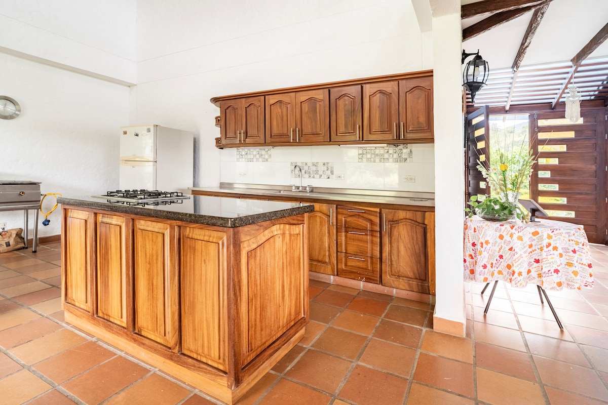 Chaque recoin d'El Mamoncillo a été créé pour vous offrir repos, confort et connexion avec la nature. Situé à Sopetrán, Antioquia, c'est l'endroit idéal pour les familles, les couples ou les amis qui cherchent à s'éloigner de la ville et à profiter d'un environnement calme et naturel. Ce que vous trouverez : Chambre spacieuse et confortable Lit King size + lit double auxiliaire Jacuzzi privatif Legging catamaran avec vue Salle de bain privée Cuisine équipée Un espace idéal pour se ressourcer