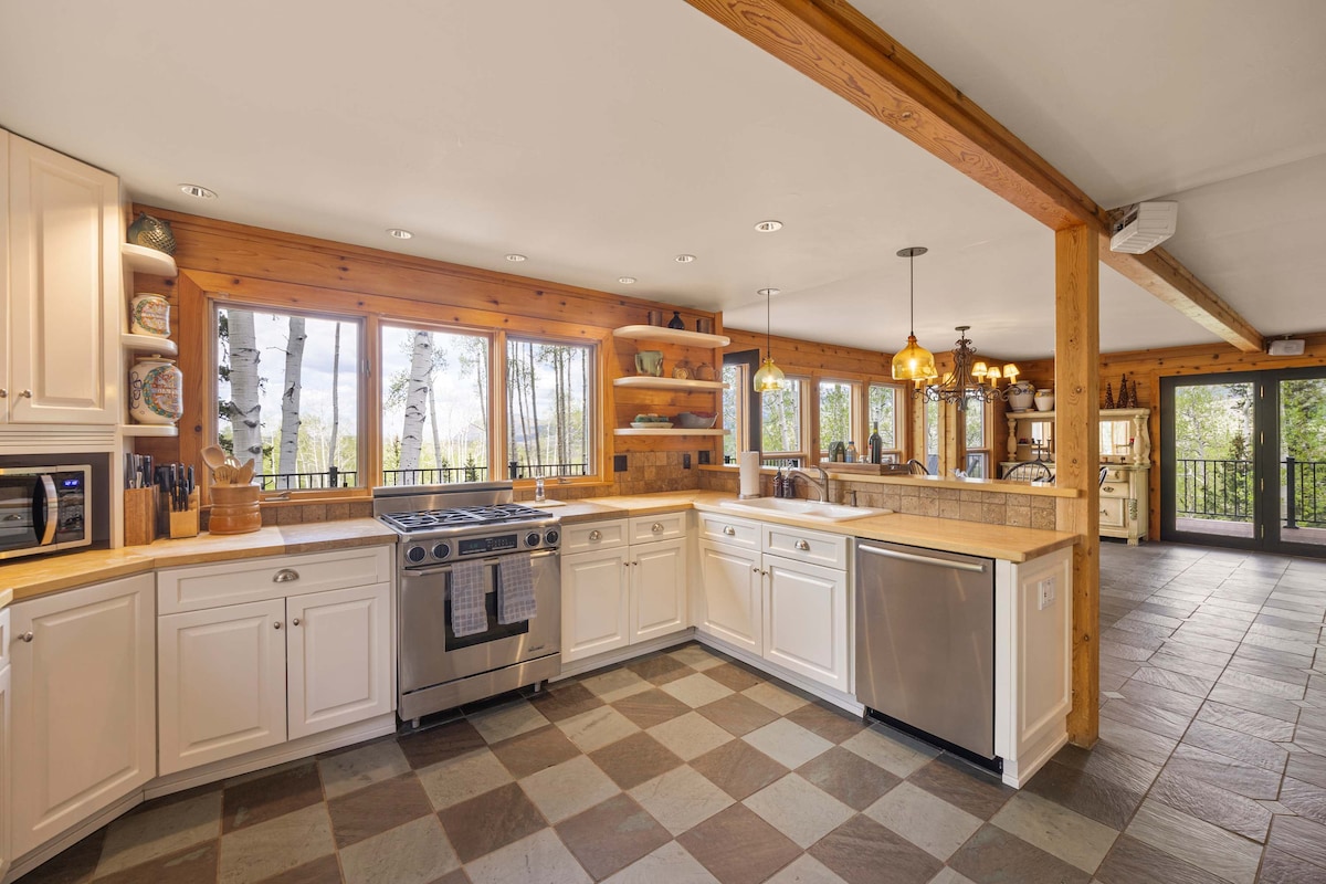 Cette maison de vacances lumineuse de 4 chambres à Telluride est parfaite pour se détendre et se divertir ! Situé au bout de la route, ce joyau privé se trouve à quelques minutes des boutiques et restaurants populaires. À l'intérieur, vous trouverez 3 niveaux d'espace de vie avec de grandes fenêtres, des vues impressionnantes et un accès à de multiples espaces de vie extérieurs. Détendez-vous dans le jacuzzi, faites des grillades sur le balcon, jouez dans la salle de jeux, faites de l'exercice dans la salle de sport à domicile ou ressourcez-vous dans les chambres confortables. Cette maison offre tout ce dont vous avez besoin pour un séjour inoubliable.