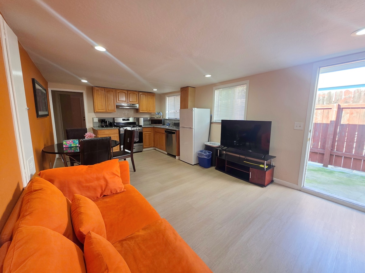 Il s'agit d'un logement récemment rénové à l'arrière d'une maison unifamiliale. Il dispose d'une chambre Queen, d'une belle salle à manger/salle de repos avec télévision intelligente (pas de chaînes locales), d'une friteuse, d'un réfrigérateur, d'ustensiles de base pour le café et d'une buanderie gratuite. - À 3 minutes en voiture de la station Bayfair BART - 15 minutes en voiture de l'aéroport d'Oakland - À 25 minutes en voiture de San Francisco. - À quelques minutes de l'autoroute 880, 238 et 580 - À quelques minutes à pied de Walmart, Starbucks, épicerie, restaurants et bien d'autres. Notre logement est parfait pour 1 à 2 personnes qui veulent un séjour privé et relaxant.