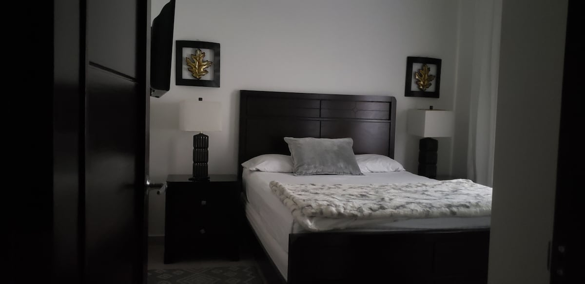 Appartement neuf, finement meublé, confortable, situé dans un quartier résidentiel exclusif, à 1,1 km de Mall Altara. Il dispose de deux chambres deux salles de bains. Salle de bain privée et dressing, la deuxième chambre avec lit Full size, TV. La cuisine avec tous les ustensiles, réfrigérateur, cuisinière, micro-ondes, climatisation dans les chambres et le salon, TV avec câble numérique, Internet, sécurité privée avec contrôle d'accès. Espace social avec piscine et bar. Il dispose également d'une salle de sport.