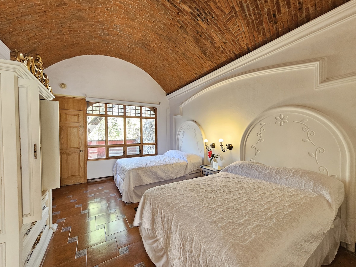 Hébergement avec un excellent emplacement dans le centre historique de Querétaro à quelques mètres des principales places et jardins ainsi que du réseau de promenades. Excellent pour visiter à pied les musées, les bâtiments emblématiques du baroque tels que les églises, les couvents, etc. ... et la vie nocturne du centre-ville. Séjournez dans une maison ancienne du XVIIIe siècle rénovée pour les appartements, avec un espace de co-working et une surveillance 24 heures sur 24.