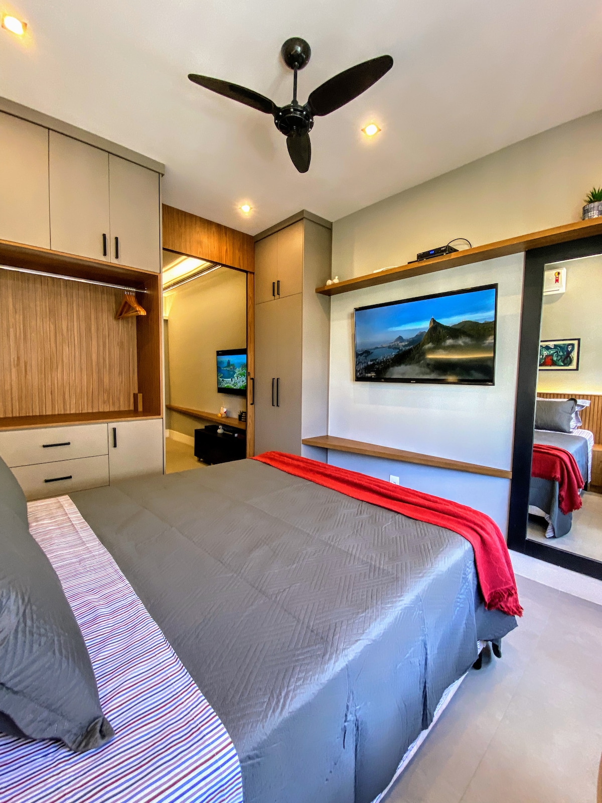 Notre espace a été rénové en 2022. Avec une proposition de design sophistiquée et moderne, elle est conçue pour l'usage exclusif d'AIRBNB. Pour assurer votre nuit de sommeil, nous pensons à tous les détails : rideaux occultants, lit queen size et climatiseur divisé L'espace dispose également d'une cuisine entièrement équipée, d'un espace de travail et d'une grande salle de bain confortable Stratégiquement situé au cœur de Flamengo, le quartier offre un accès facile et un déplacement aux principaux sites touristiques.