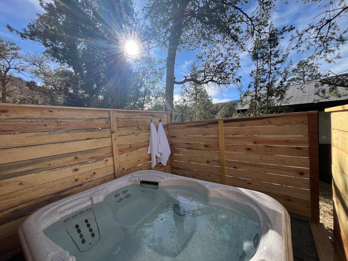 Évadez-vous dans une retraite paisible en forêt Nichée sur un terrain boisé de 1,5 acre, cette cabane relaxante offre la retraite parfaite pour les amoureux de la nature et les aventuriers. Située à côté de la réserve nationale de Valles Caldera, notre propriété dispose de : - Jacuzzi relaxant : détendez-vous parmi les pins ; - Possibilités d'observation de la faune - Courte distance en voiture de Fenton Lake pour une pêche de premier ordre - Conforts modernes pour un séjour paisible - Proximité des activités de plein air pour toutes les saisons : randonnée, vélo, pêche et ski.