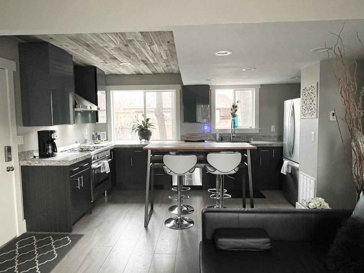 RAISONS POUR LESQUELLES VOUS NE VOUDREZ ALLER NULLE PART AILLEURS LORS DE VOTRE PROCHAIN VOYAGE DANS L'UTAH : Entièrement rénovée avec amour, cette maison de 3 chambres/2 salles de bain dans le quartier historique de Sandy dispose de 3 niveaux d'espace et d'un garage privé pour 2 voitures pour garer et ranger votre équipement de ski. La cuisine entièrement approvisionnée, la télévision UHD intelligente Roku de 65 pouces et l'Internet haut débit en font l'endroit idéal pour vos prochaines vacances de ski dans l'Utah ! Barbecue, mobilier de patio confortable et foyer au propane pendant les mois d'été ajoutent au charme et au plaisir de votre voyage estival.