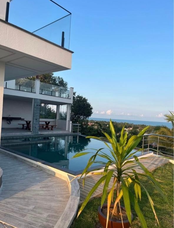 Magnifique villa d'architecte de 250 m ² + terrasse de 100m2, dans une copropriété privée à 50 m de Praia Guaiu, l'une des plus belles plages de Bahia. Certainement l'une des plus belles, bien pensées, bonne et bonne et bonne maison de la région. Accueille facilement 3 familles avec adultes et enfants (4 chambres avec lit double et 1 chambre avec 3 lits simples et matelas supplémentaires).