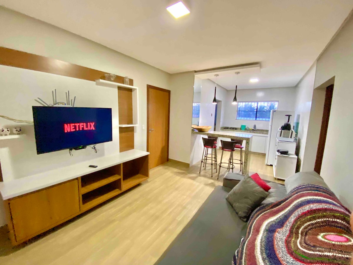 Appartement neuf, nouvellement meublé et décoré, à proximité de la plage avec Wi-Fi et tout le confort pour les familles. Copropriété avec piscine, barbecue et parking. À proximité des marchés, des pharmacies et des meilleures tentes de Porto Seguro. L'appartement dispose d'un salon avec accès au balcon, d'une cuisine complète, de 3 chambres (dont 1 suite, toutes avec climatisation, armoire et linge de lit et de bain), d'une salle de bain sociale et d'un espace de service (avec lave-linge et fer à repasser), pouvant accueillir 9 personnes.