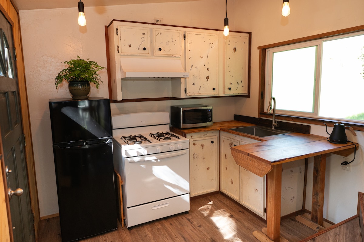 Magnifique chalet d'une chambre nouvellement rénové des années 1940. L'espace a été entièrement rénové en juin 2019 avec un plancher en planches, une salle de bain carrelée avec douche et baignoire et un nouveau mobilier élégant. Moderne et simple avec un accent sur la durabilité. Ce chalet se trouve dans un ranch de 45 acres à la campagne, mais à proximité du centre-ville d'Atascadero, de San Luis Obispo, de Paso Wine Country et de plusieurs des plus belles plages de Californie !