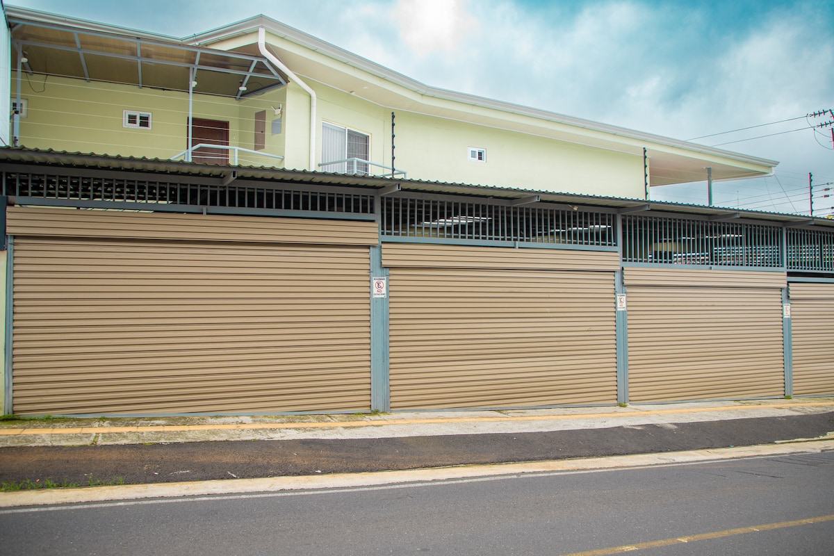 Pick up at the airport (on schedule) by small fee, 2 unts more, cars for rent, airport stay 2km, ideal to rest before after long trip, new studio with kitchen, 1 bedroon, AC, priv bathroom, safe, TV Netflix, hot water, fully equipped, terrace BBQ, 2min to foot of semi-private paid club with pools of pure and cold spring water, close to airport, car rentals, restaurants, shopping, train and bus stop, easy access to the roads that go to Sjo or the Pacific, 30min from Poas Volcano, Starbucks farm