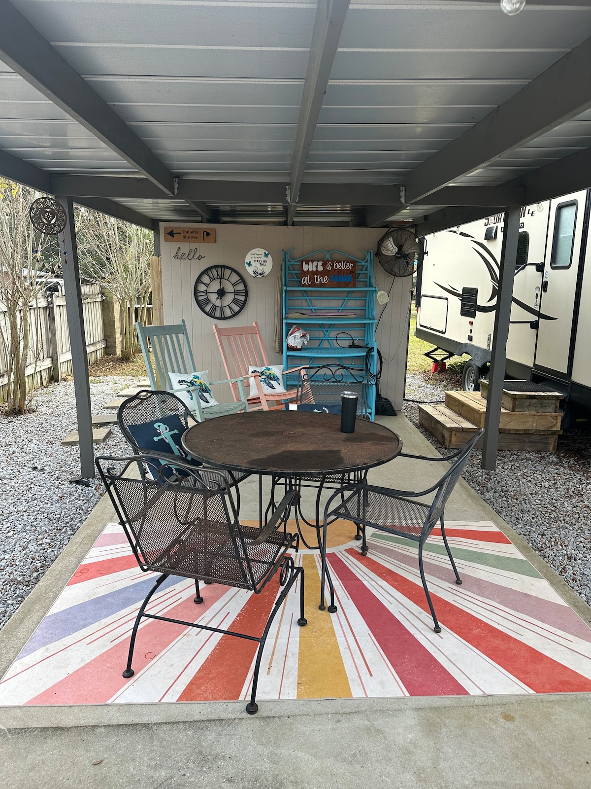Profitez d'une élégante caravane privée rénovée avec tous les équipements dont vous avez besoin. Animaux acceptés moyennant des frais, 1 grand ou 2 petits chiens autorisés. Faible coût pour que vous puissiez dépenser de l'argent pour dîner dehors, des activités dans la région et des souvenirs. Deux vélos sont disponibles pour faire une balade à vélo dans les régions voisines. À seulement 9 miles de Navarre Beach et des restaurants locaux. Des fournitures de plage sont à votre disposition, notamment des chaises longues, des serviettes, une glacière et un chariot. Nous avons également des planches de paddle à louer.