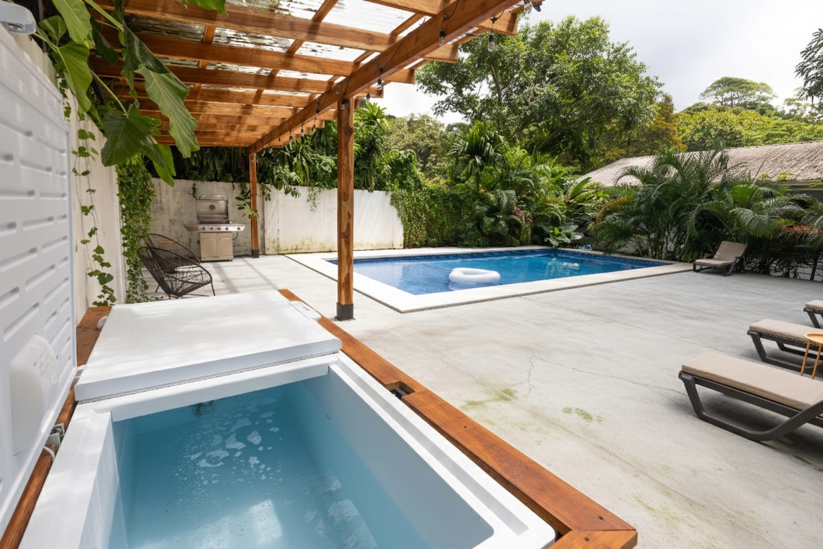 Au cœur de la plage de Santa Teresa, notre studio offre un mélange unique de confort, de style et de charme tropical. Parfait pour les couples ou les voyageurs en solo ! Le coin nuit dispose d'un lit queen size. À côté, vous trouverez un bureau et un canapé-lit. Une kitchenette bien équipée fournit tout le nécessaire pour préparer vos repas. Plongez dans la piscine d'eau salée étincelante, bronzez sur notre terrasse et allumez le barbecue ! La base idéale pour votre escapade au Costa Rica.