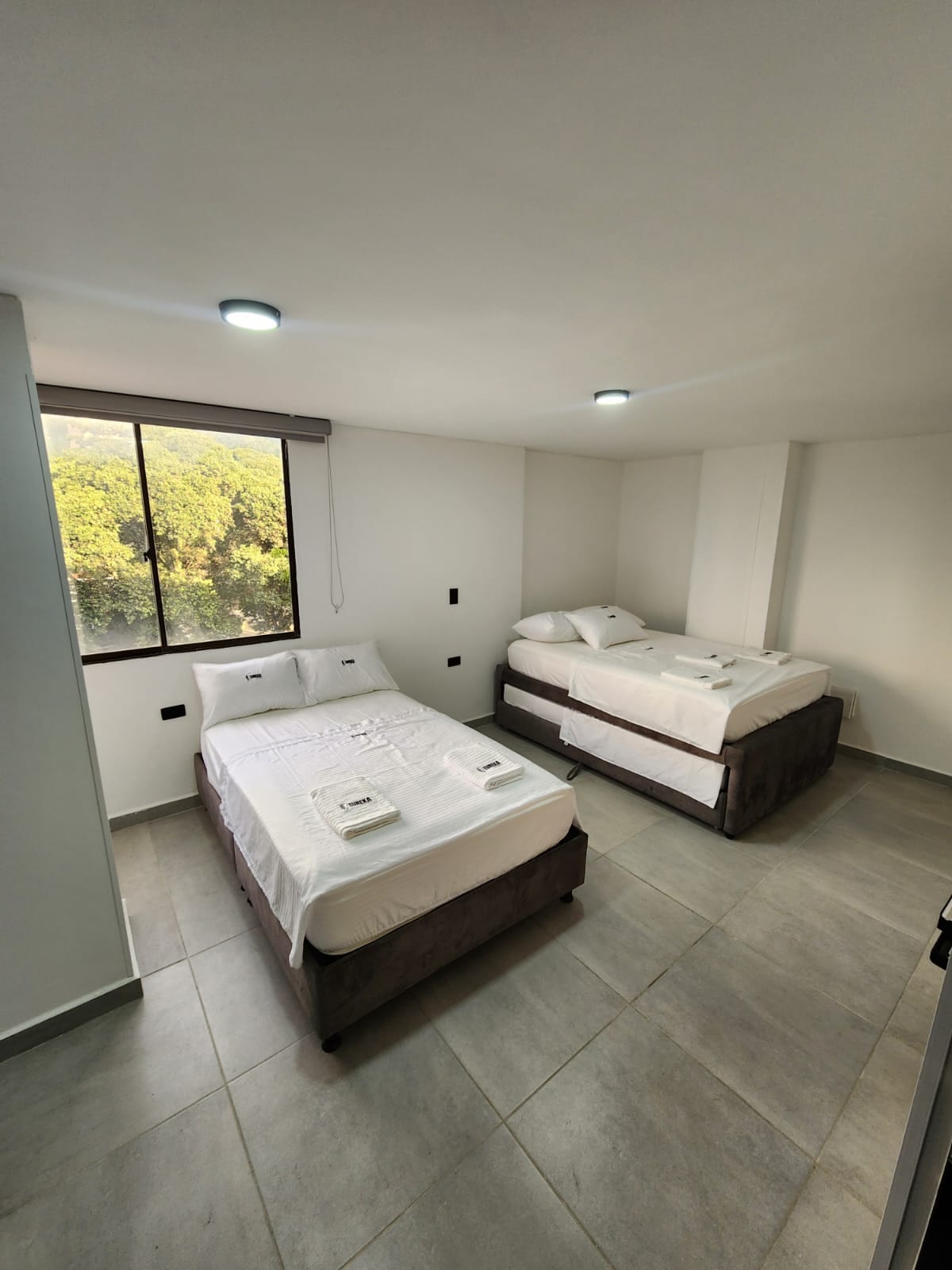 Studio à étrenner, idéal pour la famille situé dans un quartier résidentiel, à proximité des restaurants, des banques, des supermarchés, de la salle de sport, et des principales cliniques de Bucaramanga (foscal, Fosunab, Cardiovascular). L'appartement studio dispose d'une chambre principale spacieuse avec lit double, d'une salle de bain avec douche électrique, d'un canapé-lit et d'un salon avec hamac, d'une cuisine intégrée, d'un coin humide, d'un bar américain, d'ustensiles de cuisine, d'un espace de travail avec wifi 150 mbs, de 2 téléviseurs Smart et Netflix.