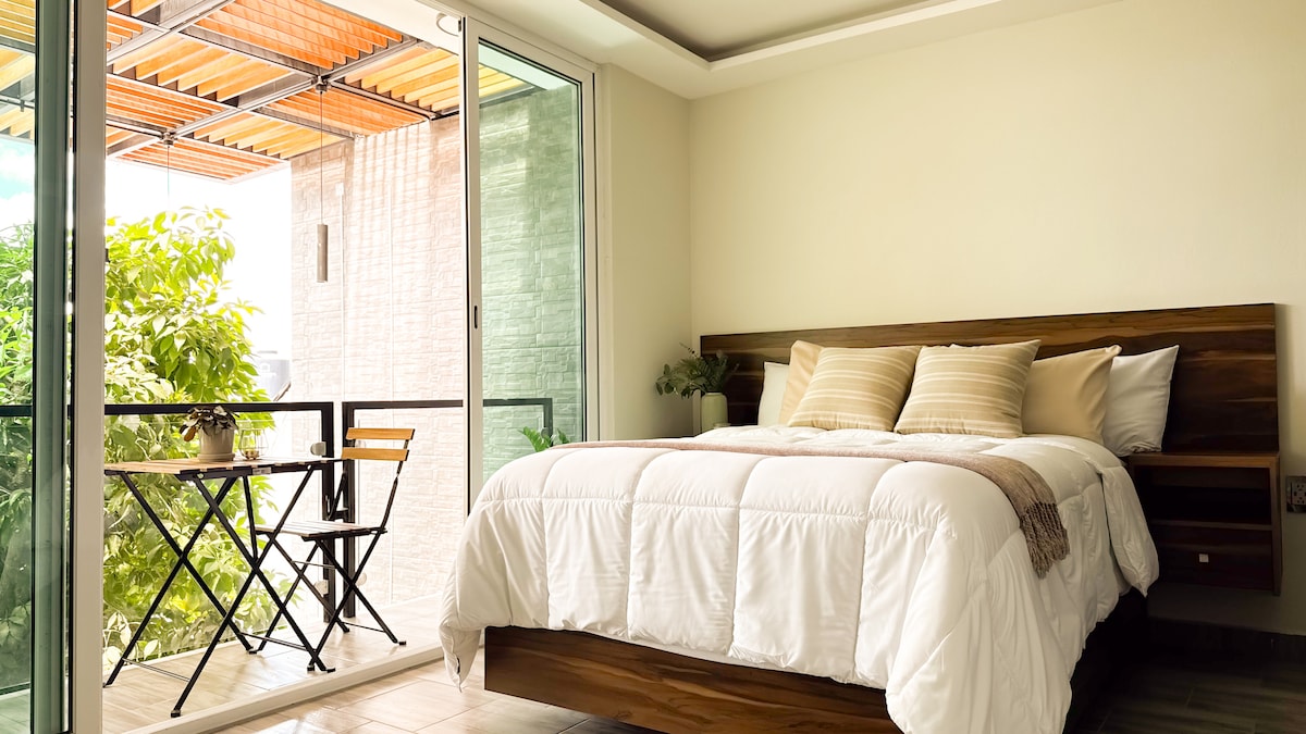 Profitez d'une expérience unique dans notre charmant hébergement, à seulement un pâté de maisons de la zone archéologique. L'espace allie confort, style et connexion avec l'histoire locale. Il dispose d'un lit confortable et d'un canapé-lit pouvant accueillir deux personnes supplémentaires. La lumière naturelle filtre à travers les portes turquoise, ajoutant de la fraîcheur à l'environnement. Détendez-vous dans l'espace jardin ou revitalisez-vous sous la douche à effet pluie. Avec Wi-Fi, cuisine équipée, linge de maison, serviettes et entrée avec serrure intelligente.