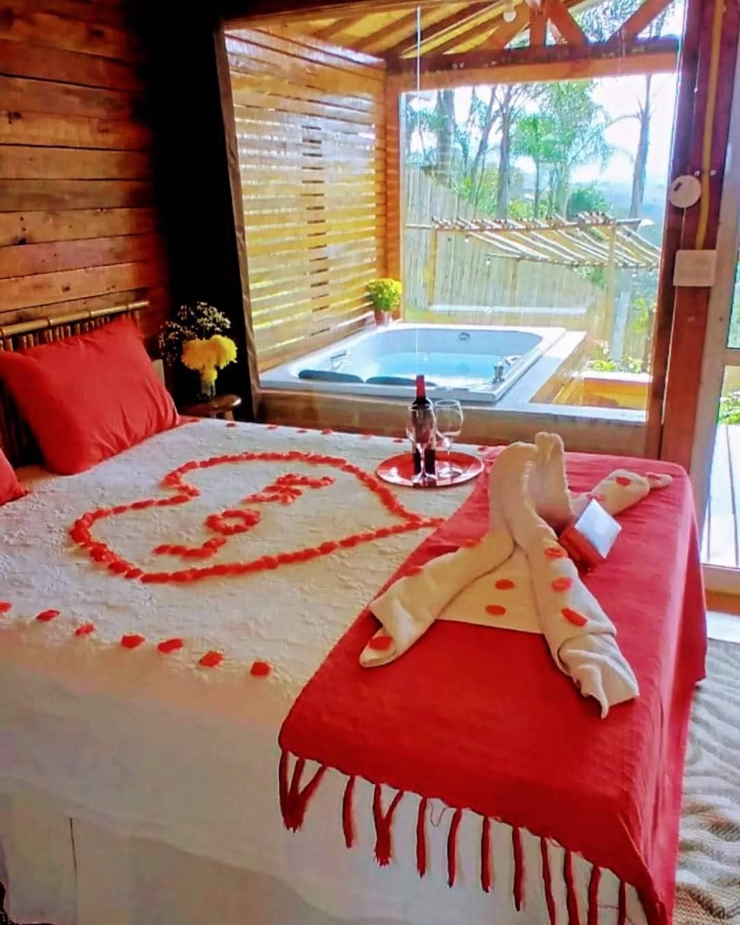 La Cabana Pekena est entourée par la verdure de la Serra da Mantiqueira. Elle est totalement privée, y compris l'hydromassage de la photo. Construite au milieu de la nature de Santo Antônio do Pinhal, c'est un endroit parfait pour les couples amoureux ! Une cabane confortable, entourée de montagnes et d'air frais... un espace romantique et élégant. Chaque détail a été conçu pour que vous viviez une expérience inoubliable, accompagnée d'une vue incroyable sur les montagnes et d'un coucher de soleil à couper le souffle!