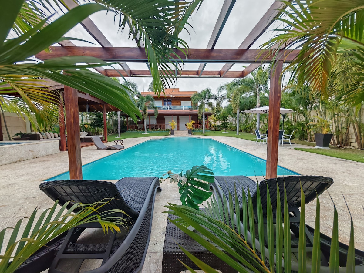Villa 5BR/5BA paisible, élégante et spacieuse à San Isidro 🌴 Accès complet à la villa, idéal pour les familles, avec une capacité de 11 personnes 🛏️ (1 lit King Size, 4 lits Queen Size, 1 lits jumeaux). Climatisation ❄️, 3 chambres avec salle de bain privée, cuisine de chef👨🍳, cuisine extérieure🔥, piscine🏊, jacuzzi🛁 🚿, douche extérieure et espace de travail dédié💻. Parfait pour les télétravailleurs et les groupes. Garage pour 4 voitures 🚗 et à quelques minutes de l'aéroport✈️ 🛍️, des centres commerciaux et des restaurants🍽️.